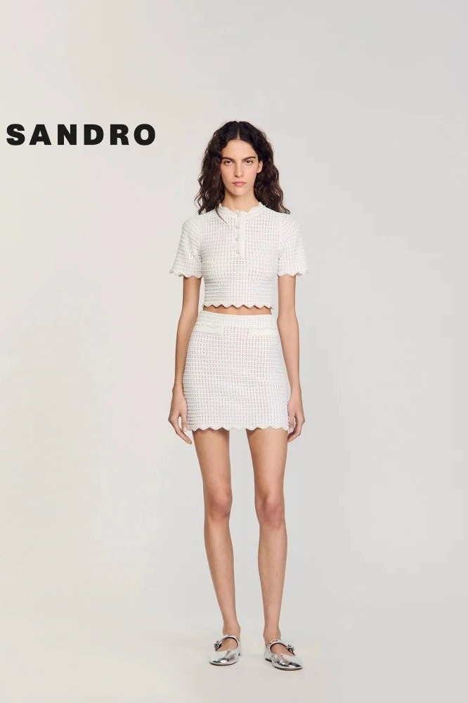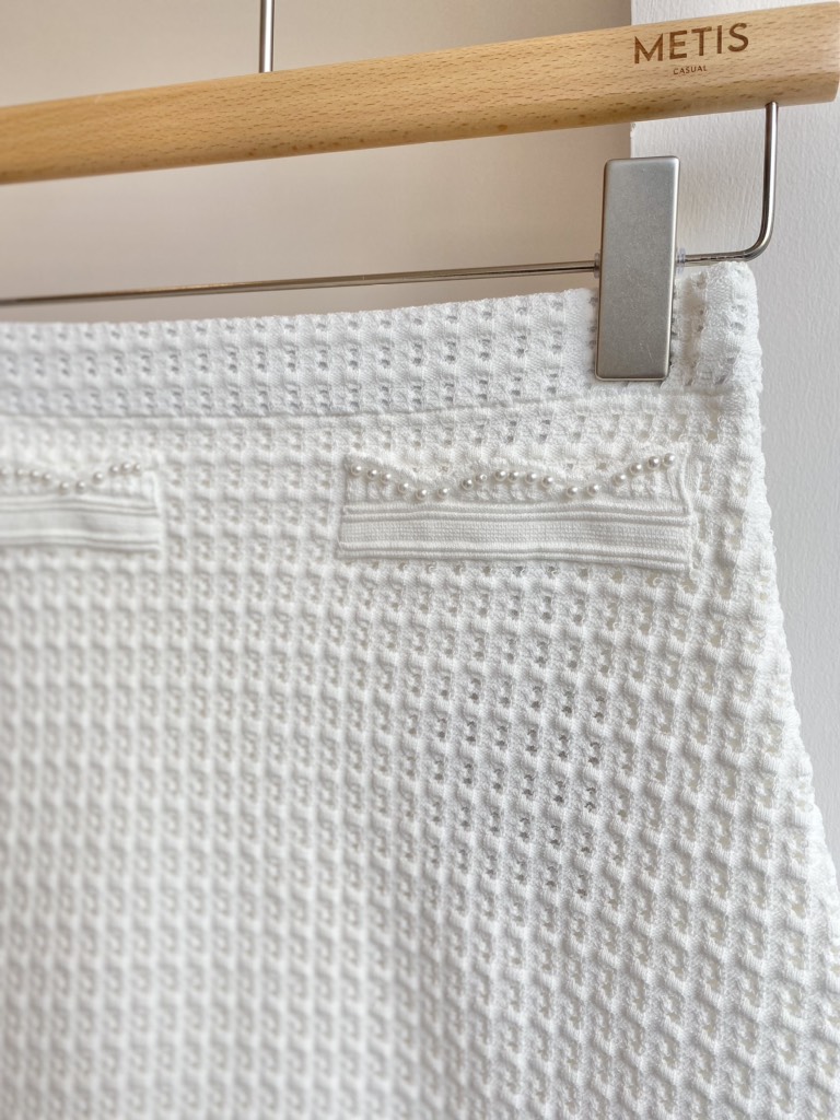 Chân váy SANDRO kem đính cườm ngắn ( CÓ SET )