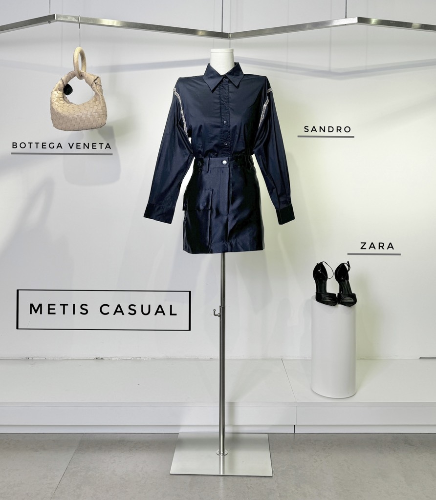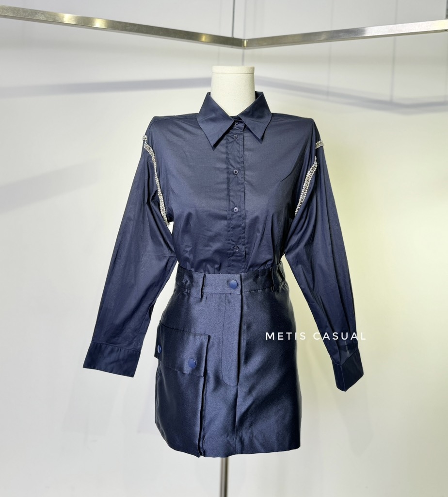 Chân váy SANDRO navy khuy lệch ( có set )