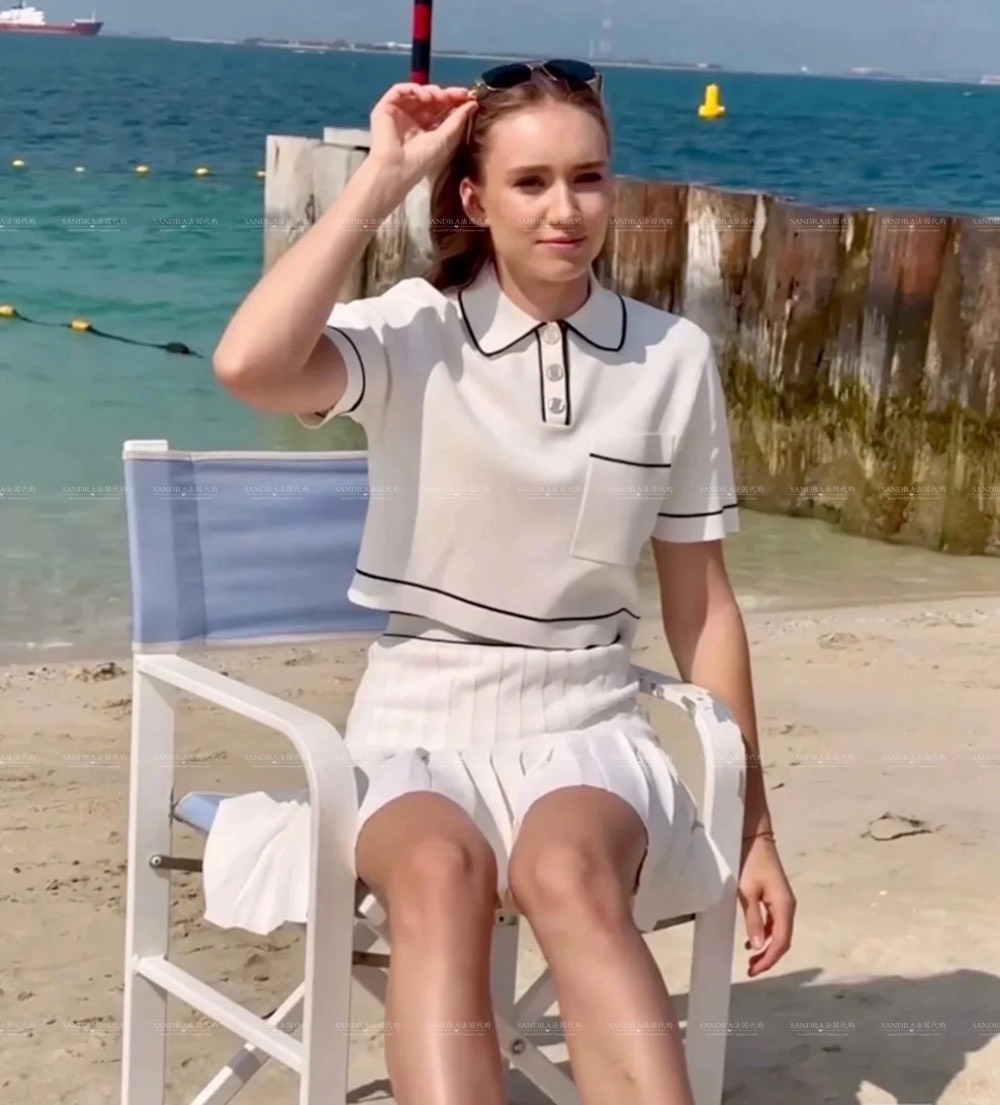 Chân váy SANDRO trắng viền