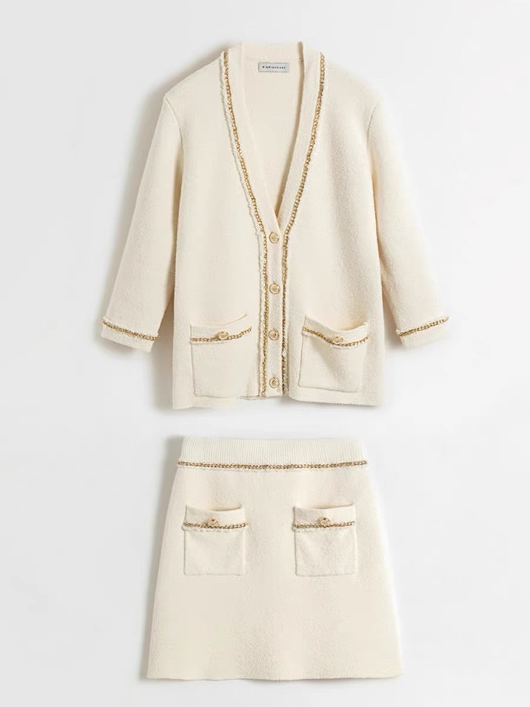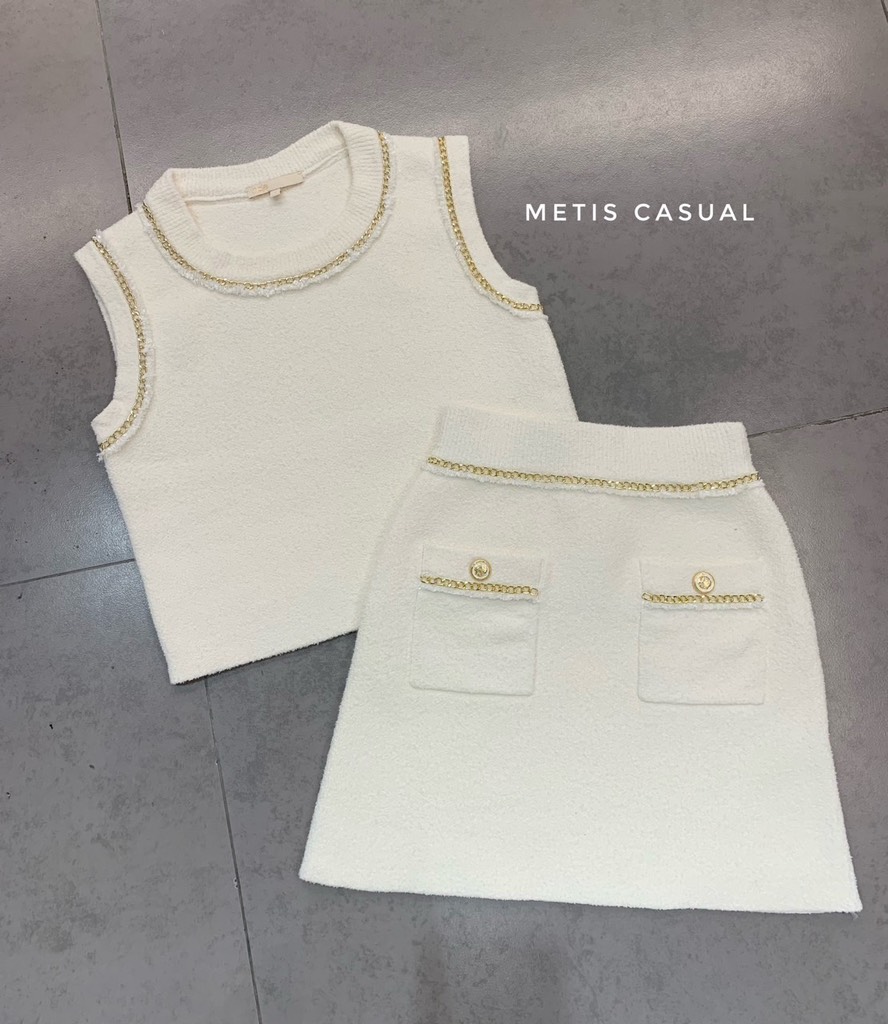 Chân váy Sandro trắng viền vàng ( có áo)