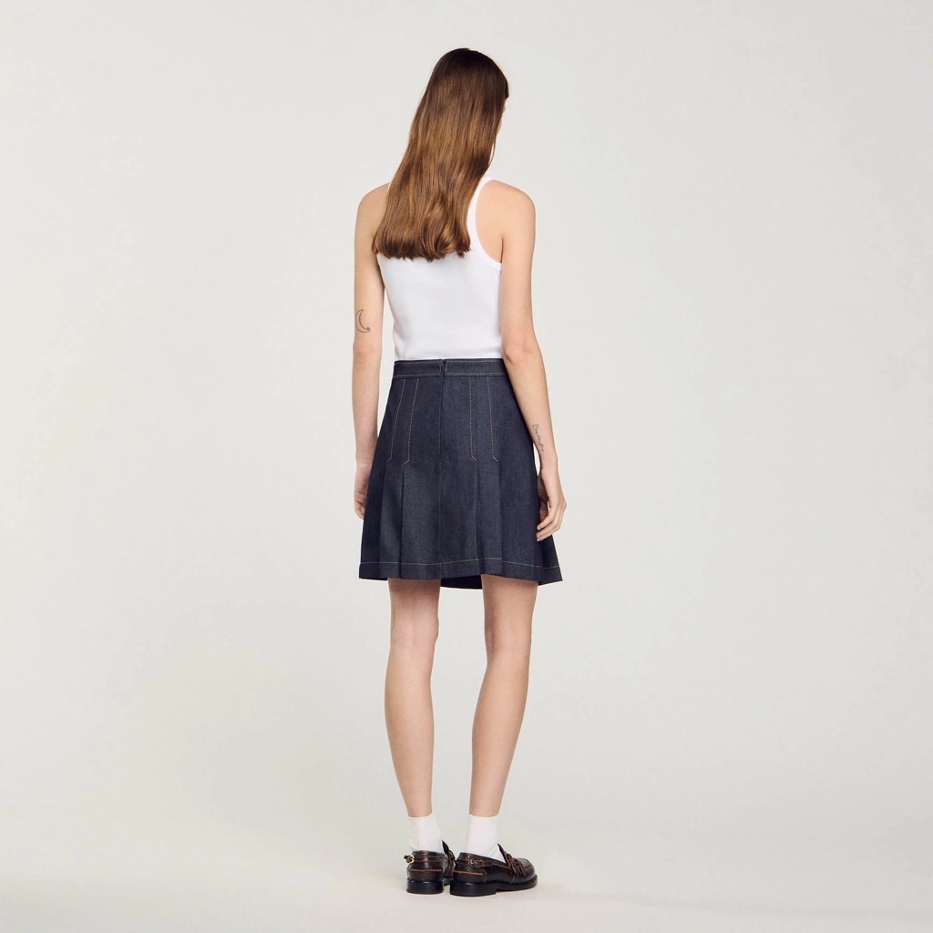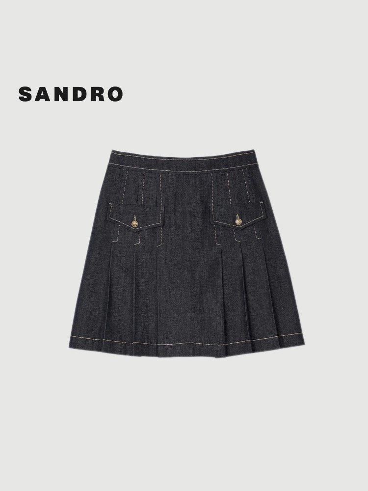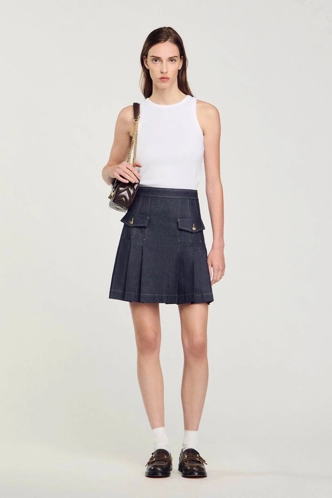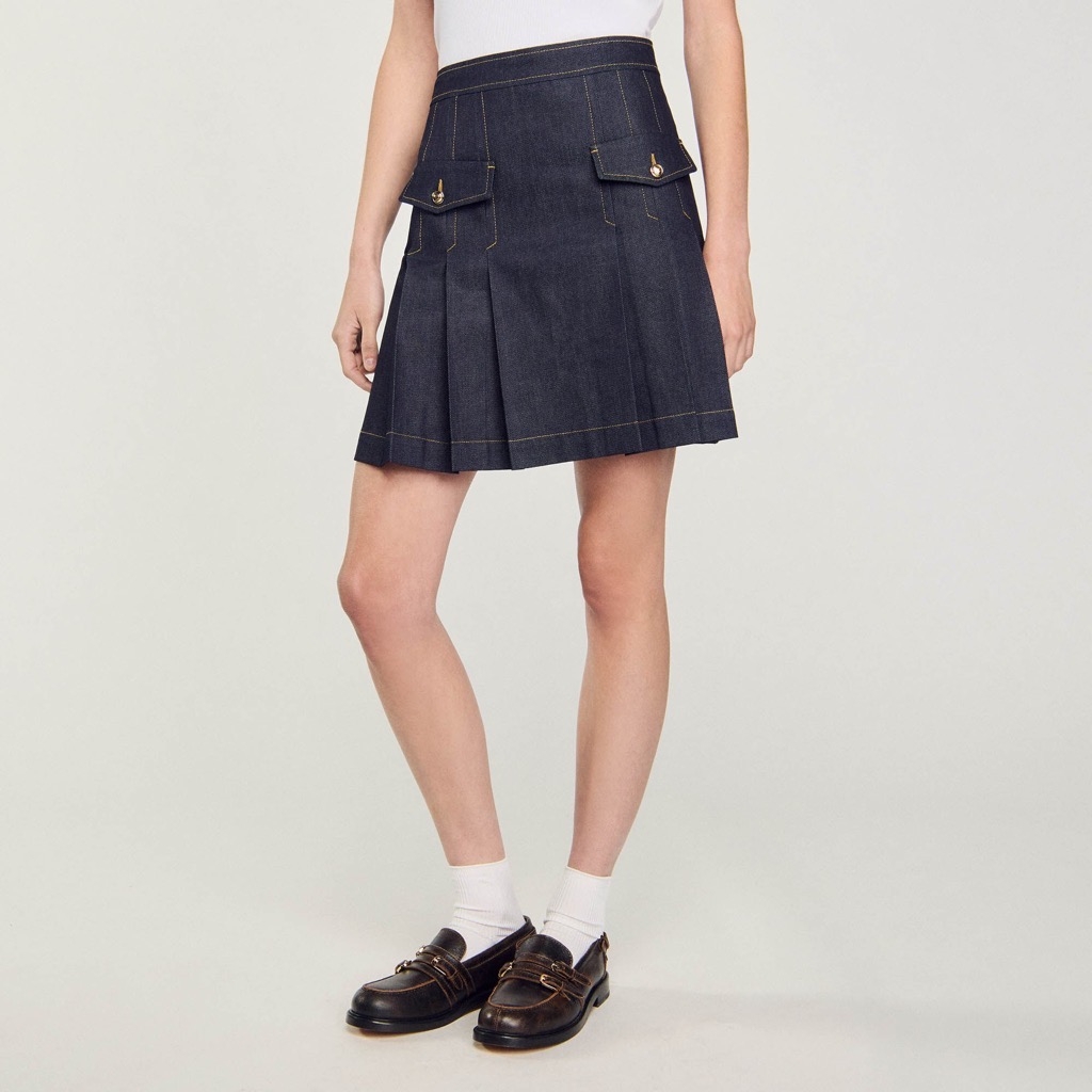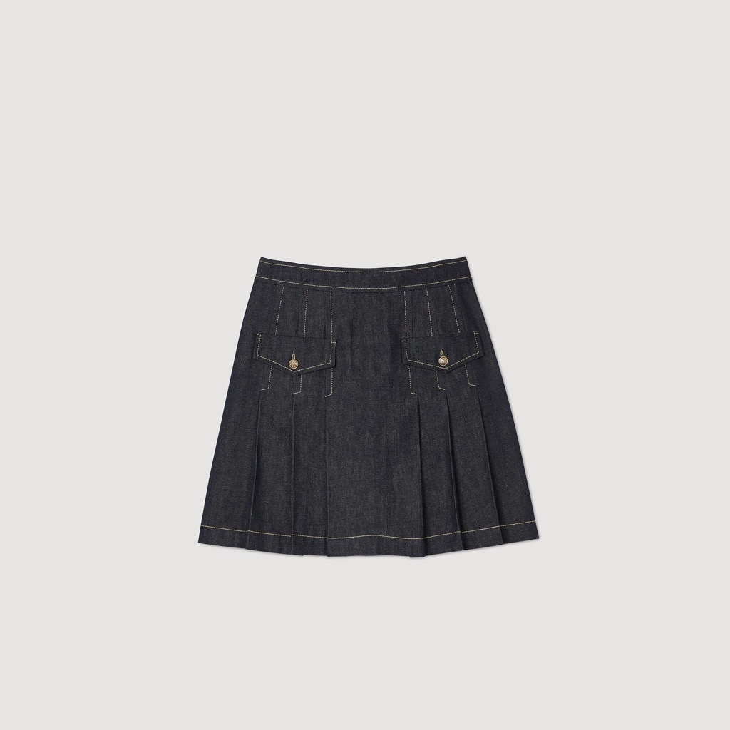 Chân váy SANDRO xếp ly chỉ vàng ( có set )