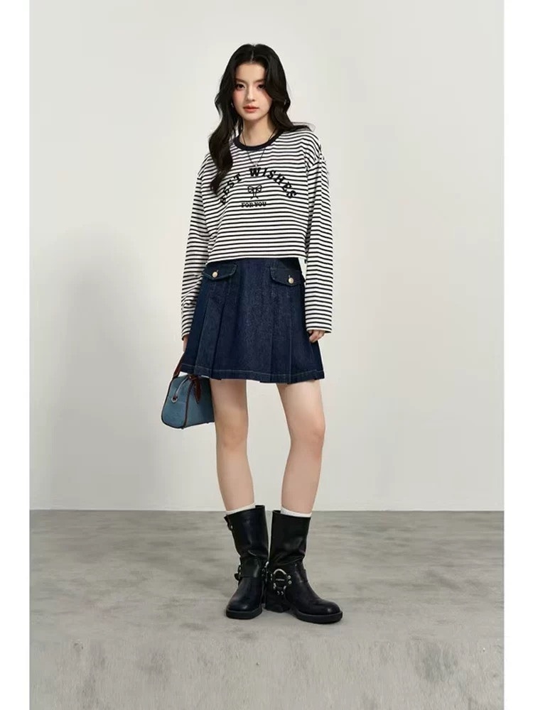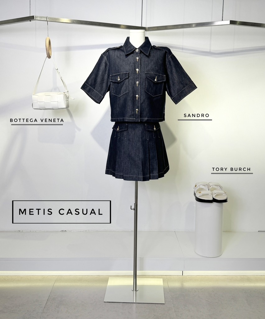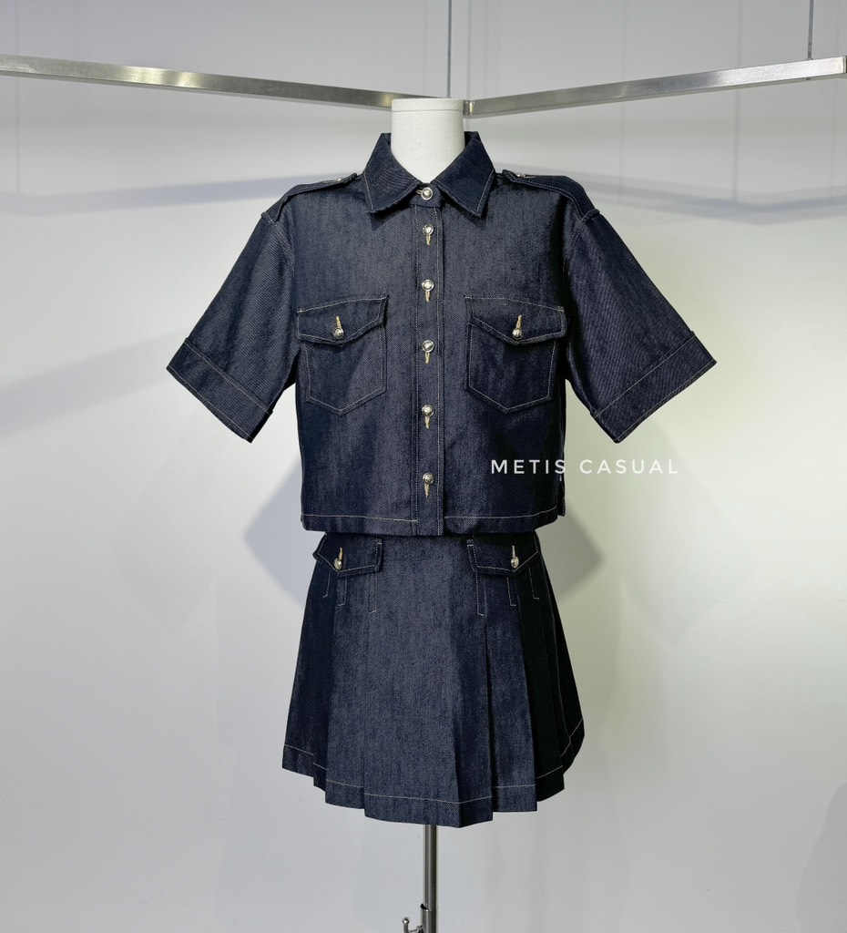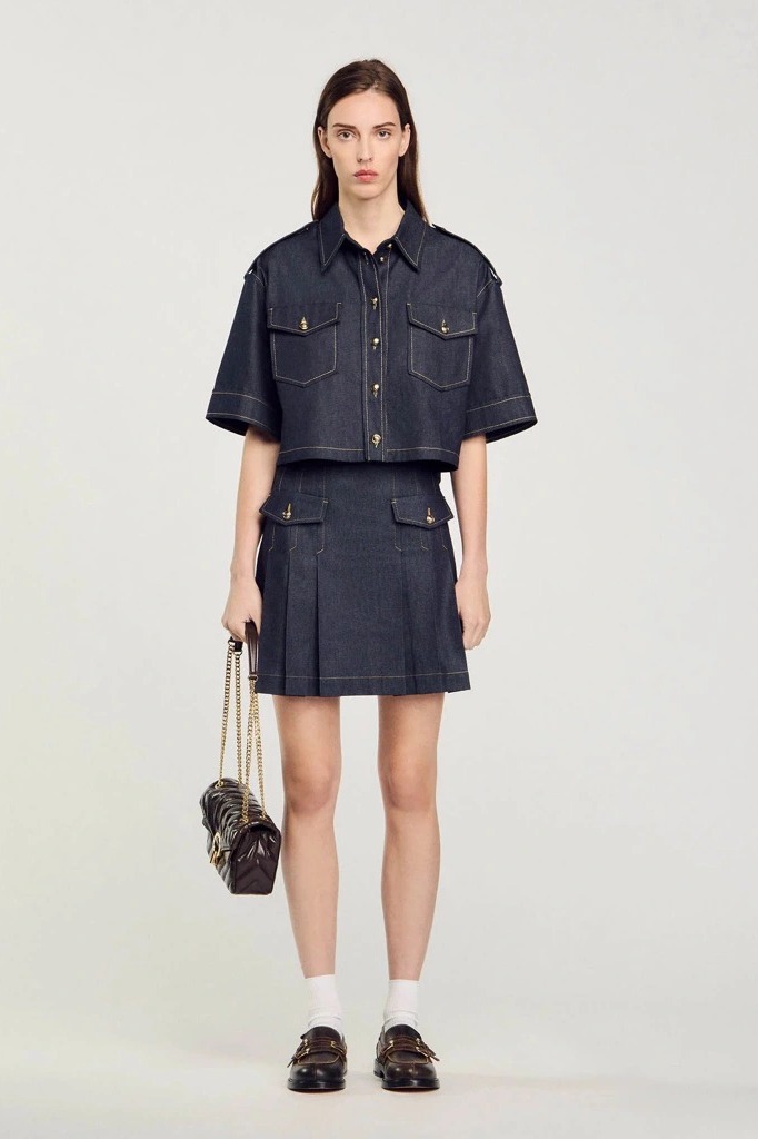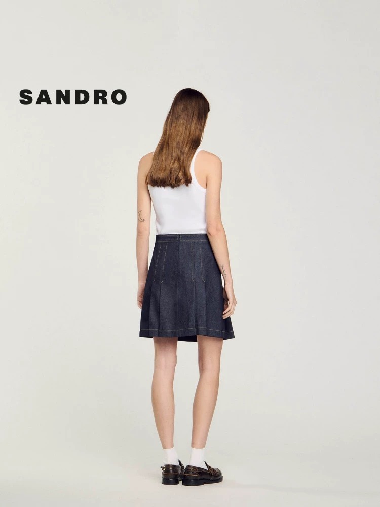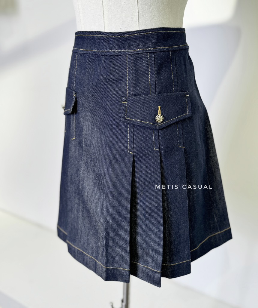 Chân váy SANDRO xếp ly chỉ vàng ( có set )