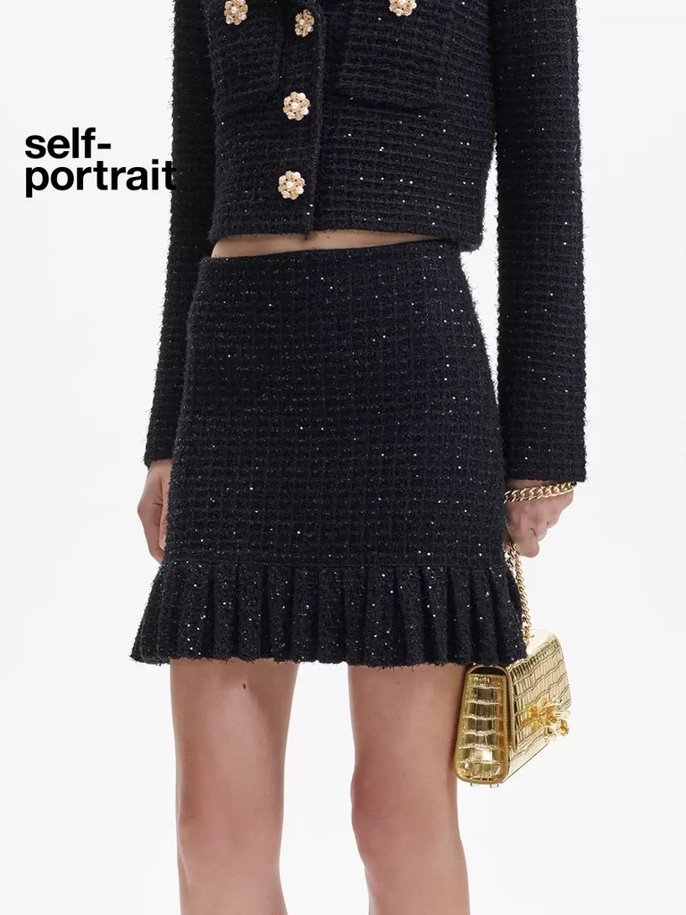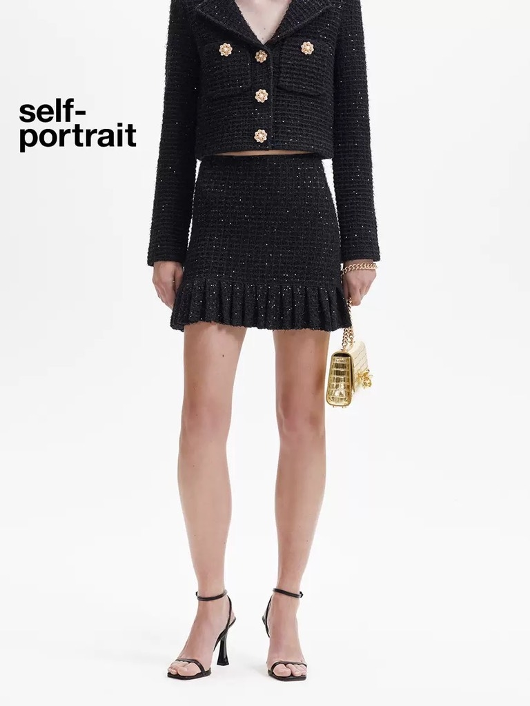 Chân váy SELF PORTRAIT đen xếp ly chân