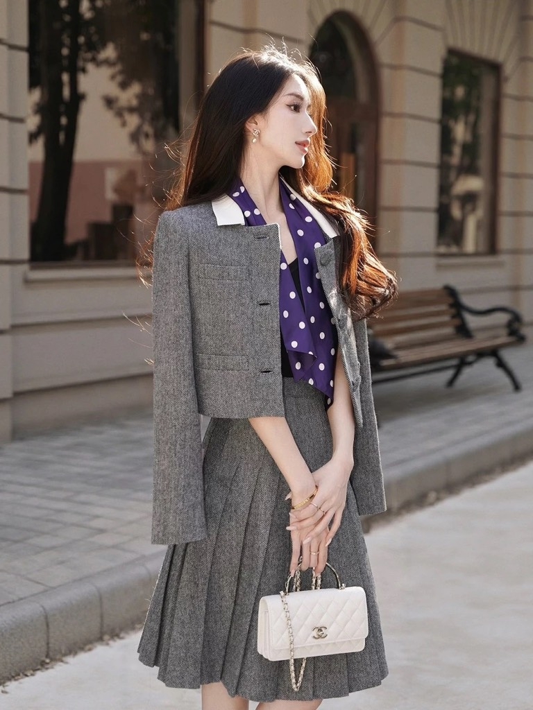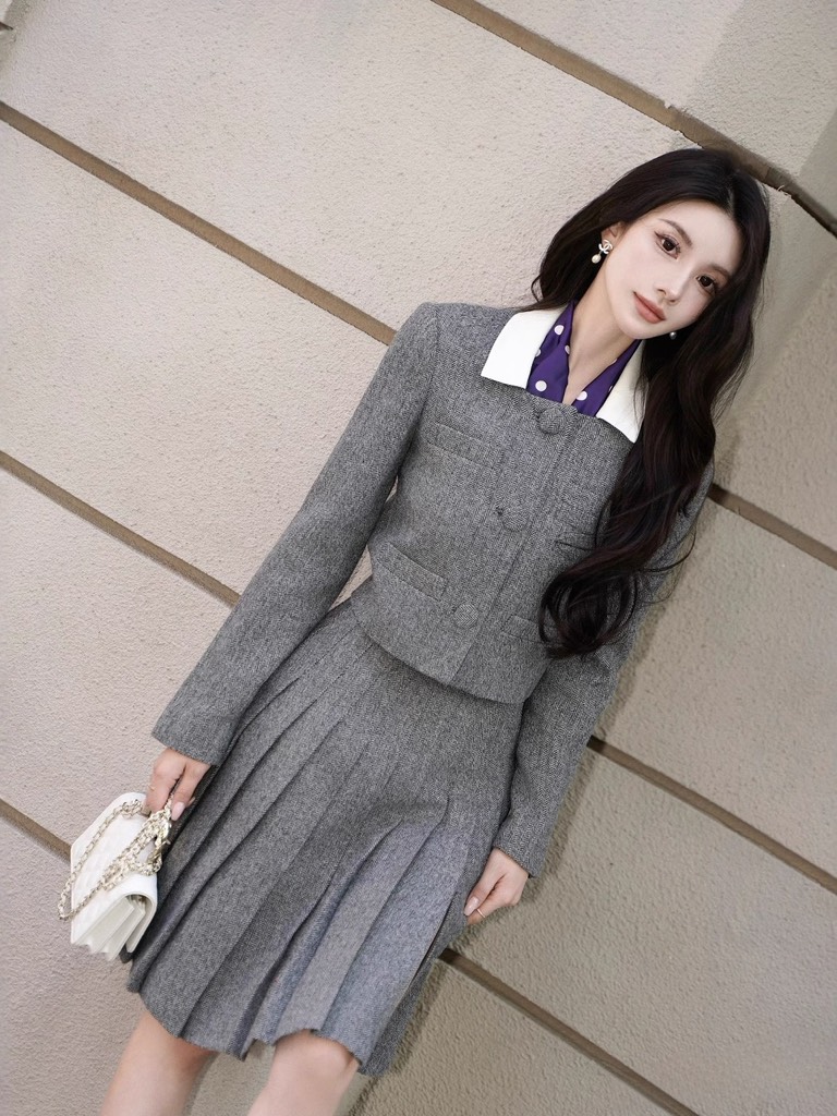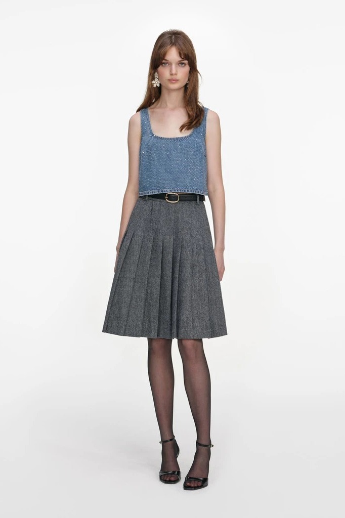 Chân váy SELF PORTRAIT ghi xếp ly (có set)
