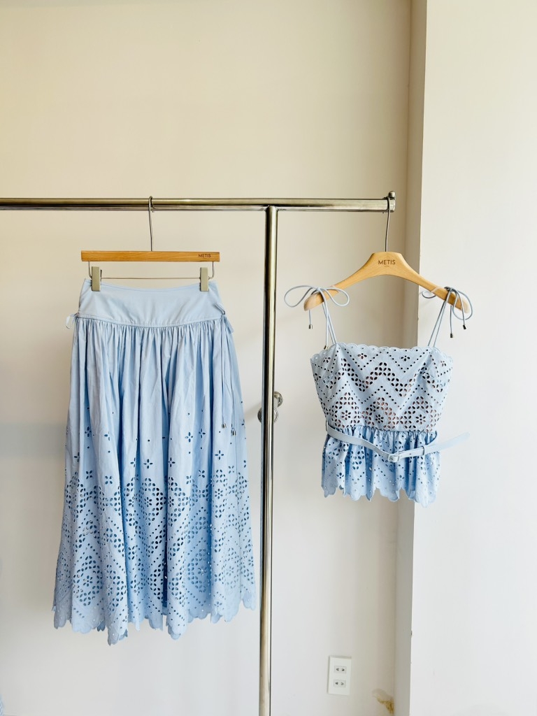 Chân váy SELF PORTRAIT xanh ren dập