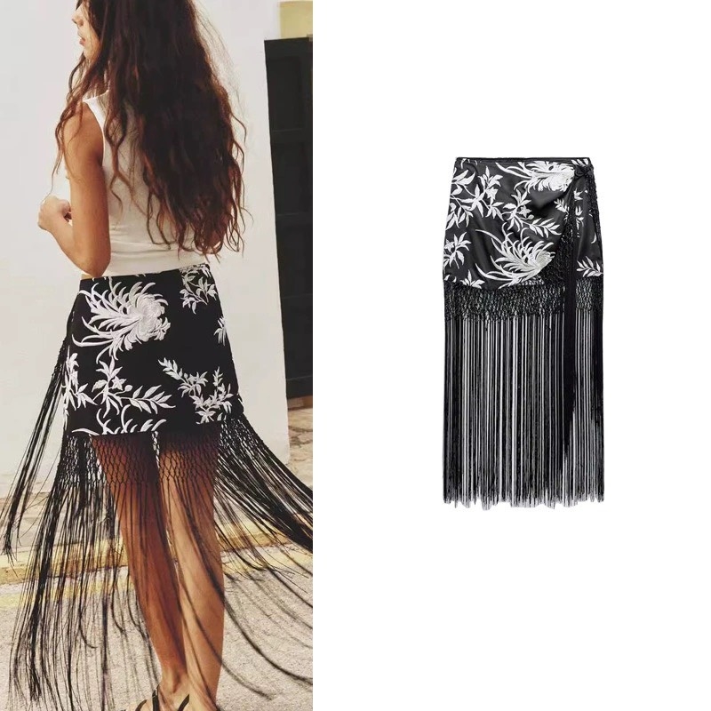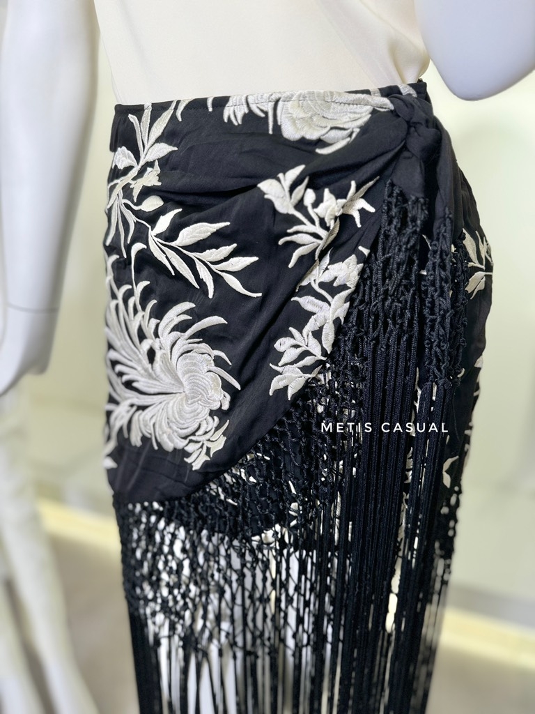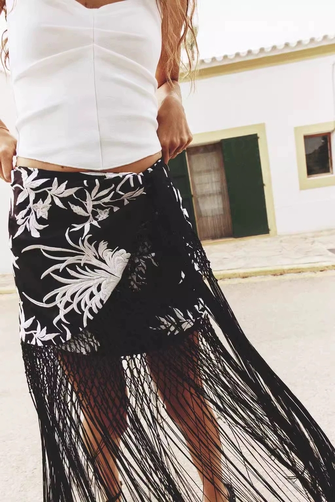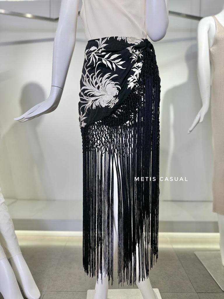 Chân váy Zara thêu, tua rua