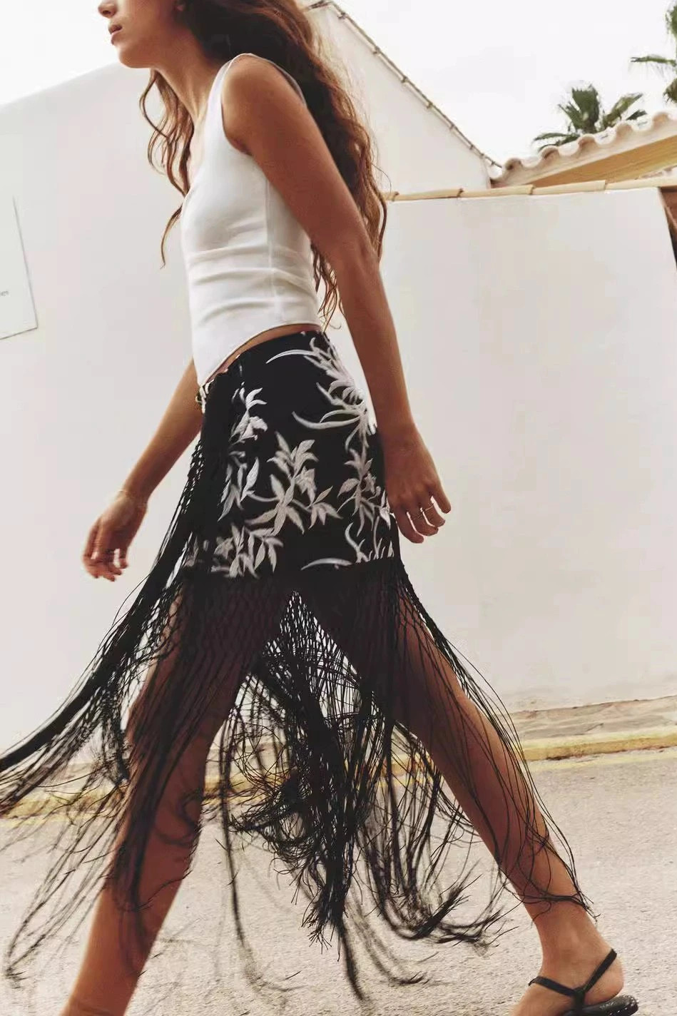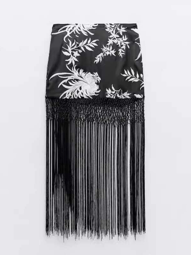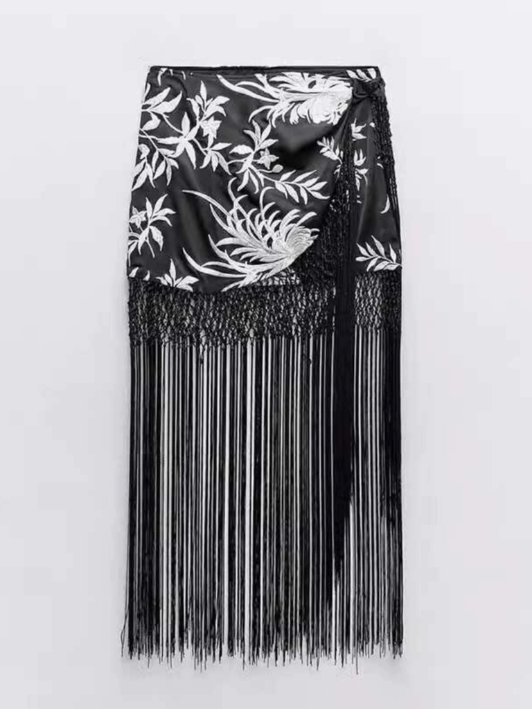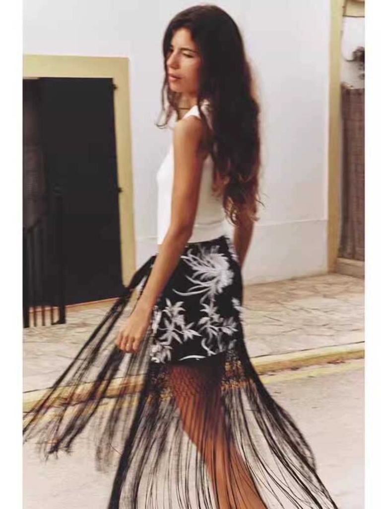 Chân váy Zara thêu, tua rua