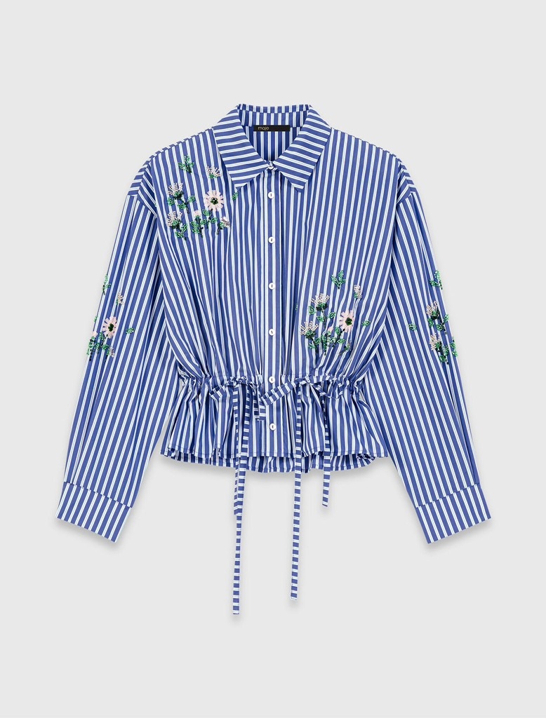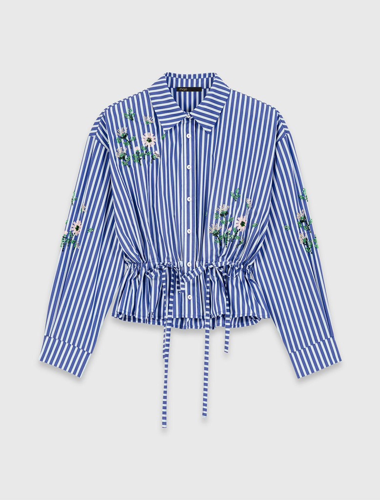 Sơ mi MAJE kẻ xanh thêu hoa (có set)