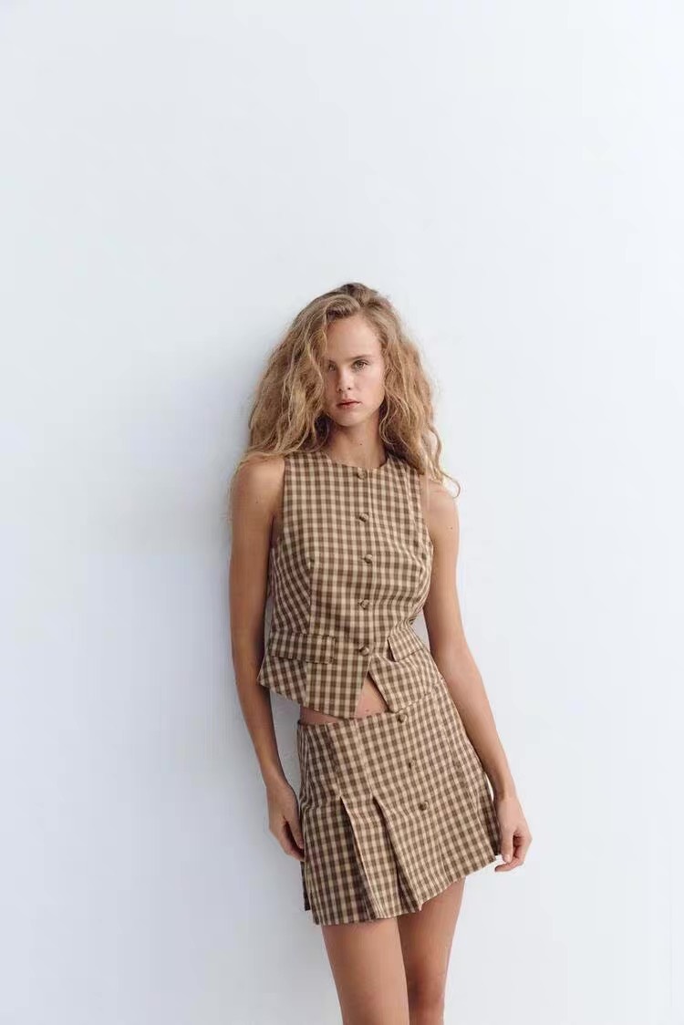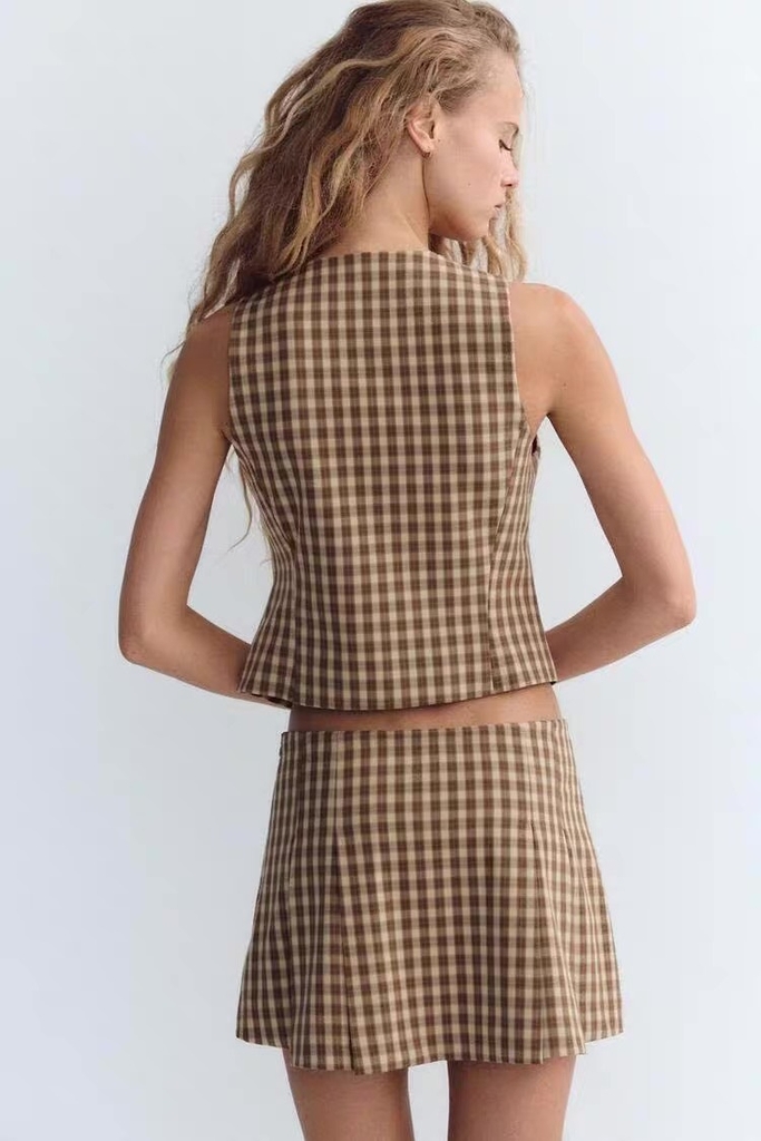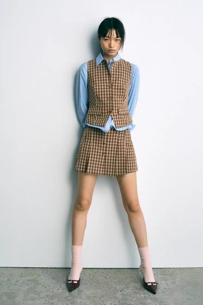 Gile ZARA kẻ nâu khuy bọc