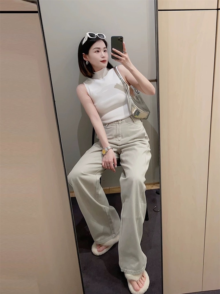 Quần jean MIUMIU xanh xuông ống rộng