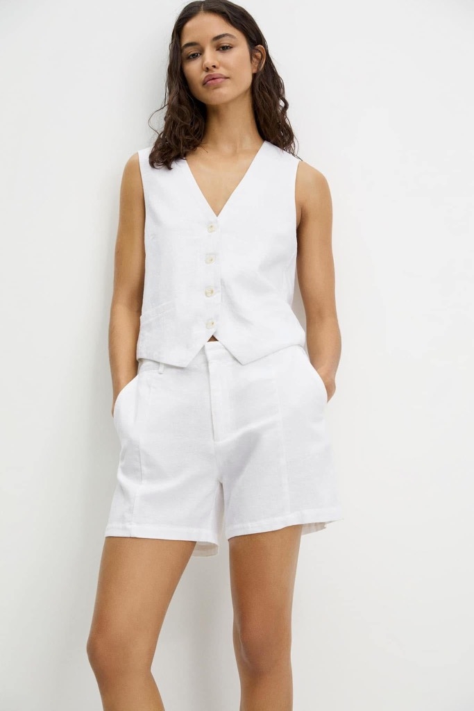 Quần sooc PULL&BEAR linen trắng