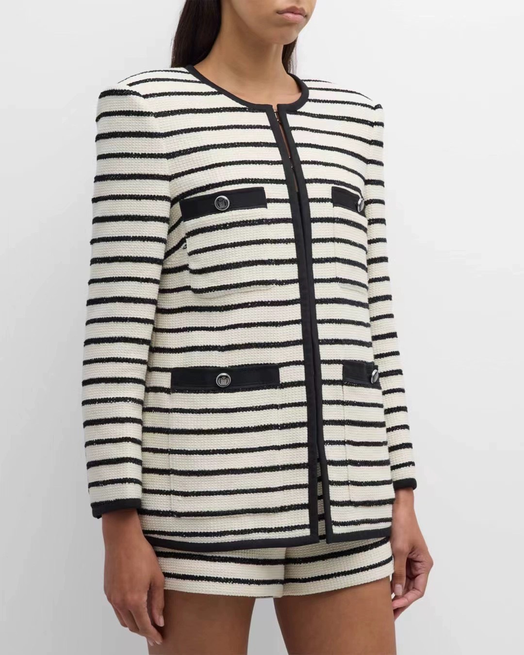 Sơ mi MAJE đen viền ngọc (có set)