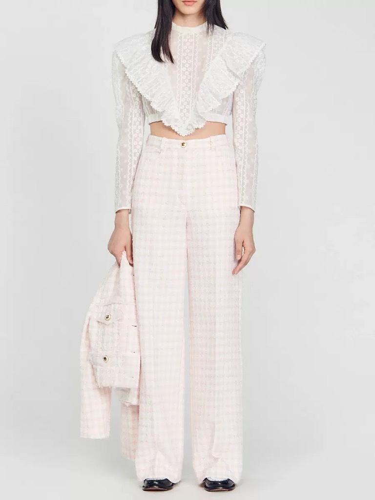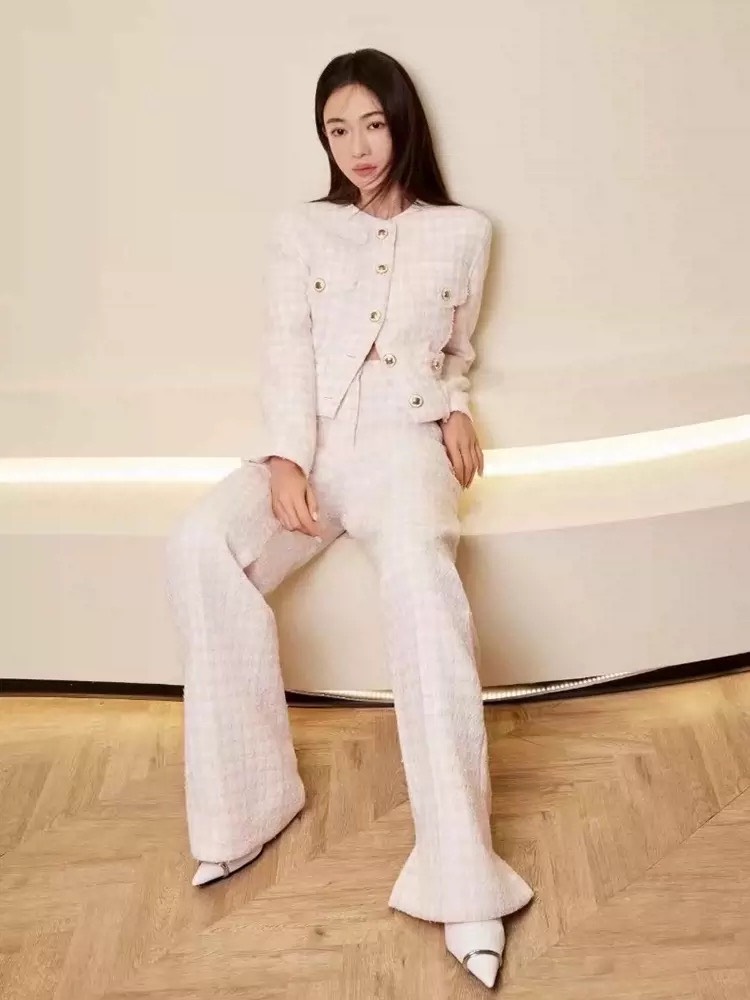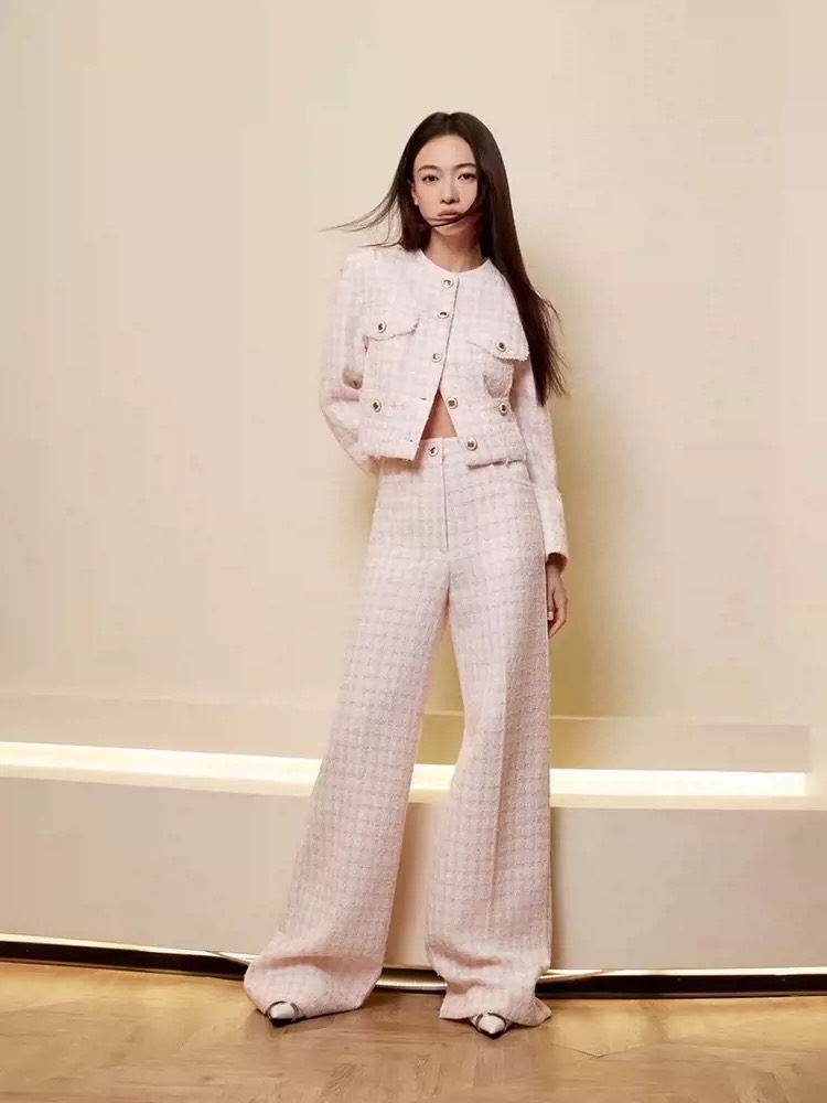 Áo khoác MIUMIU ghi viền tay nâu chun gấu (có set)