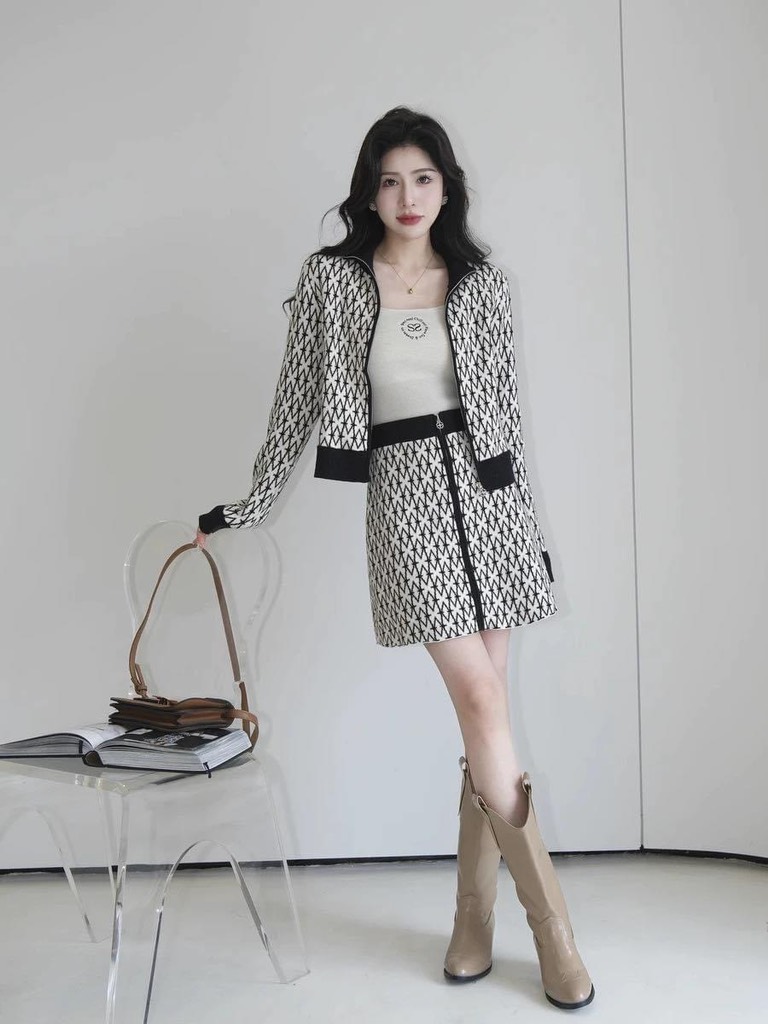 Áo khoác MIUMIU ghi viền tay nâu chun gấu (có set)