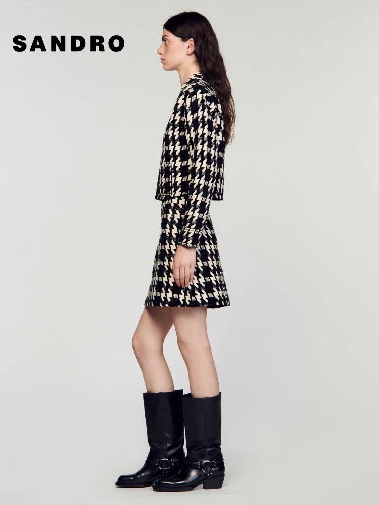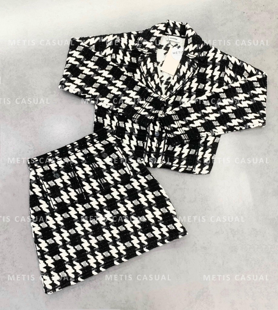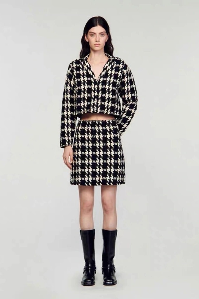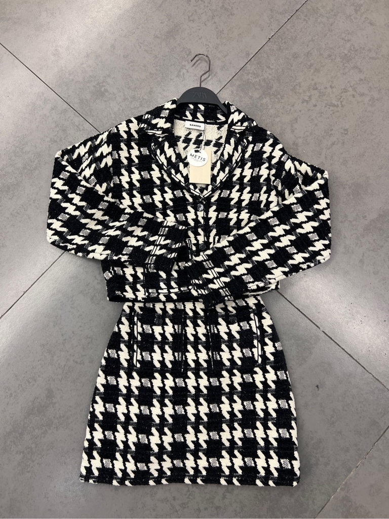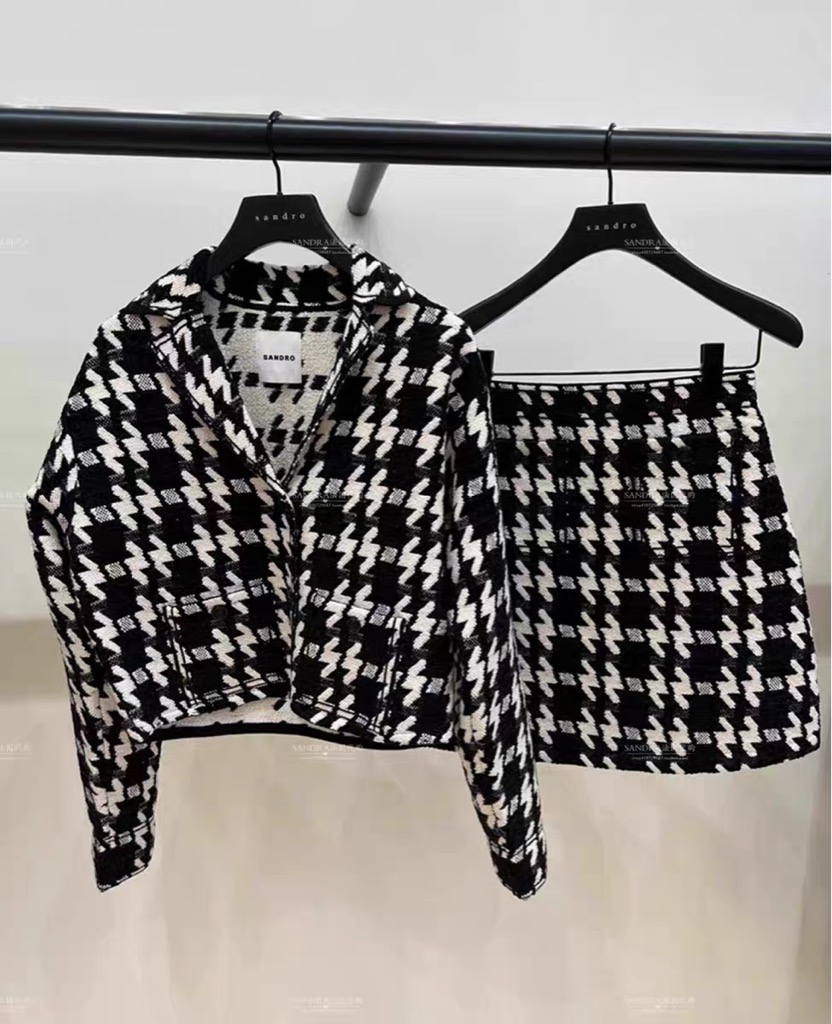 Set len dạ áo+ chân váy Sandro sóng đen kem