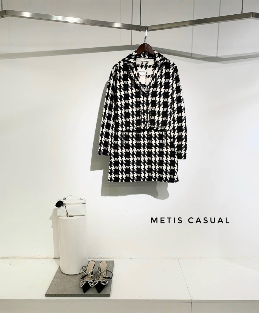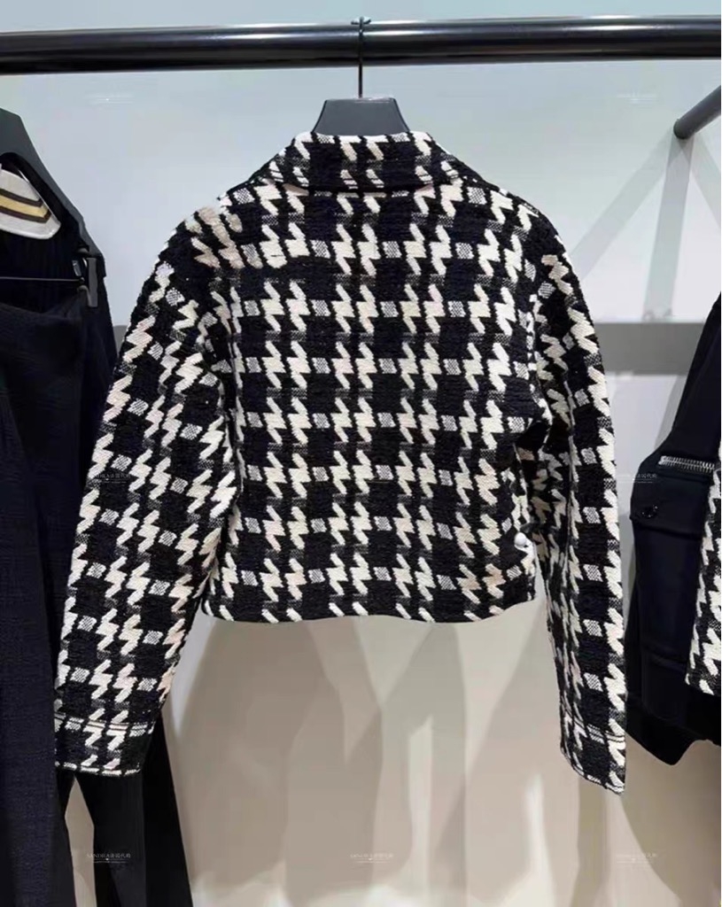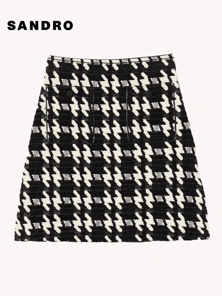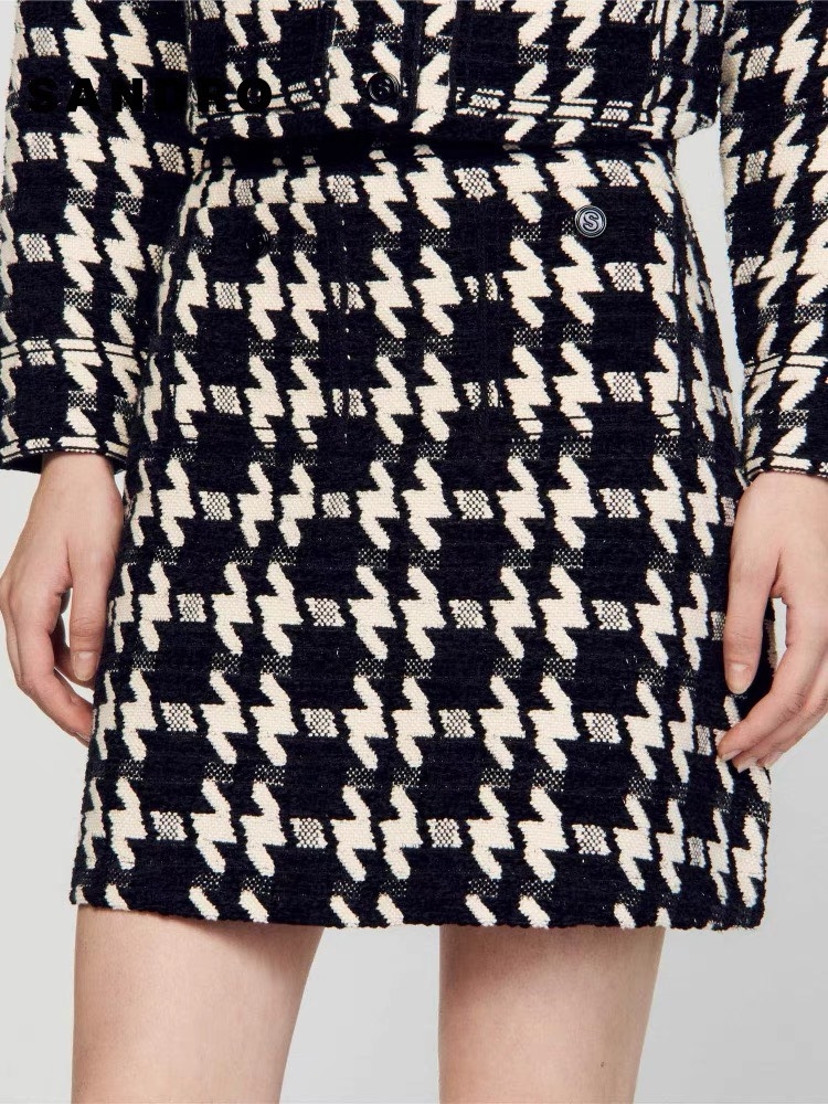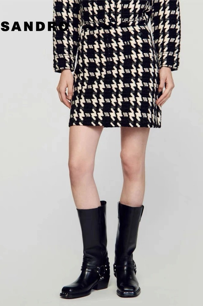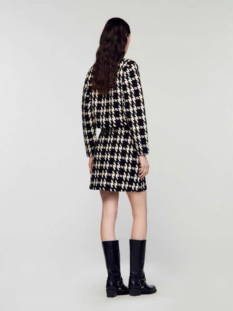 Set len dạ áo+ chân váy Sandro sóng đen kem