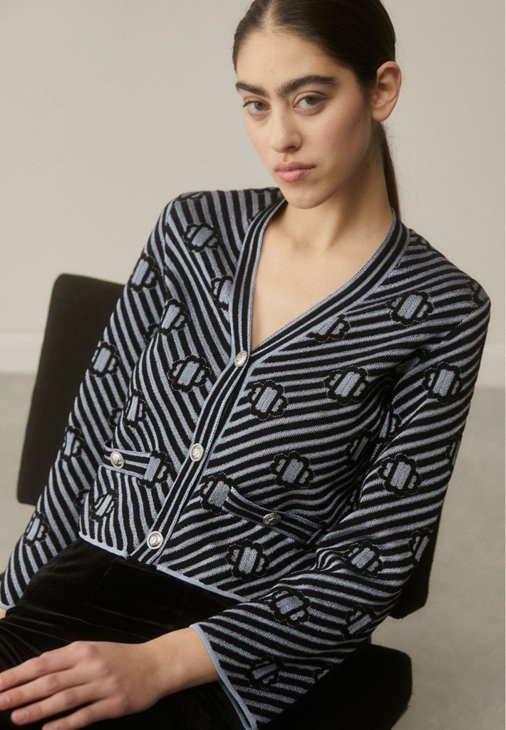 Áo khoác MIUMIU ghi viền tay nâu chun gấu (có set)