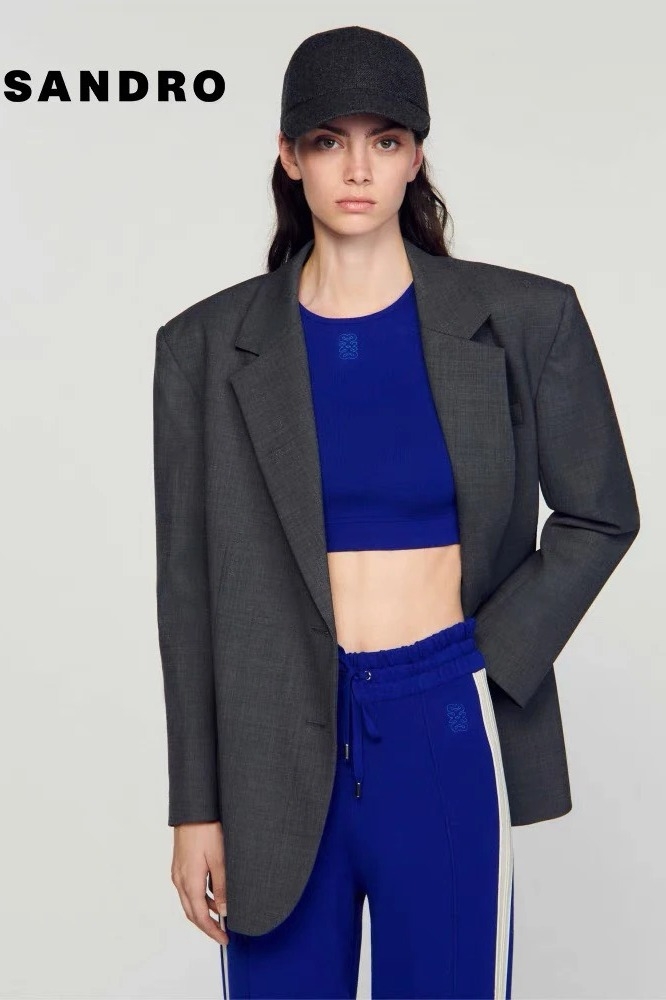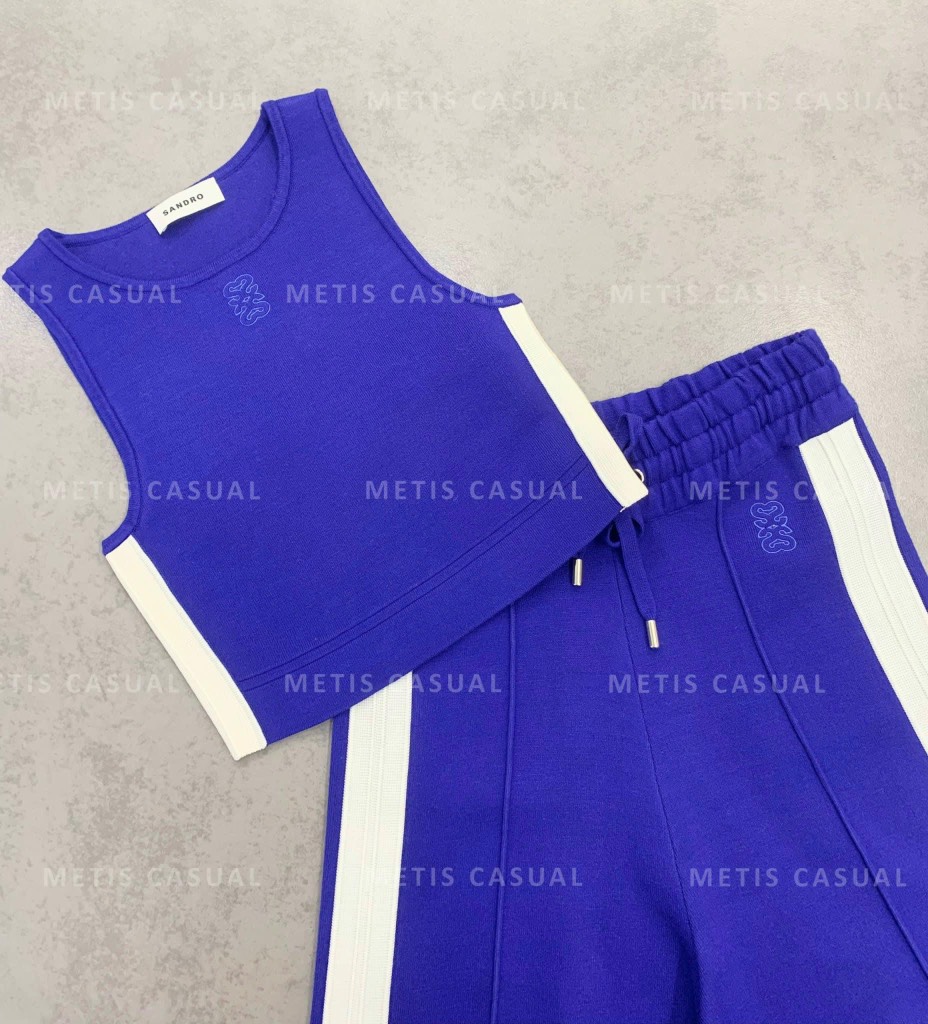 Set Sandro áo sát nách+ quần xanh sọc trắng
