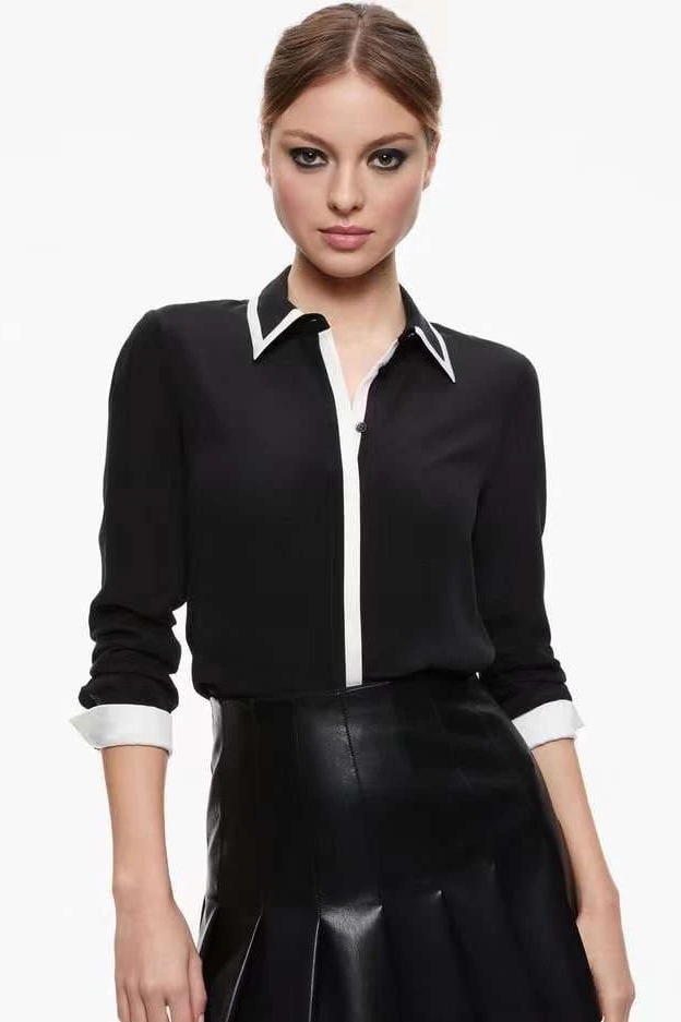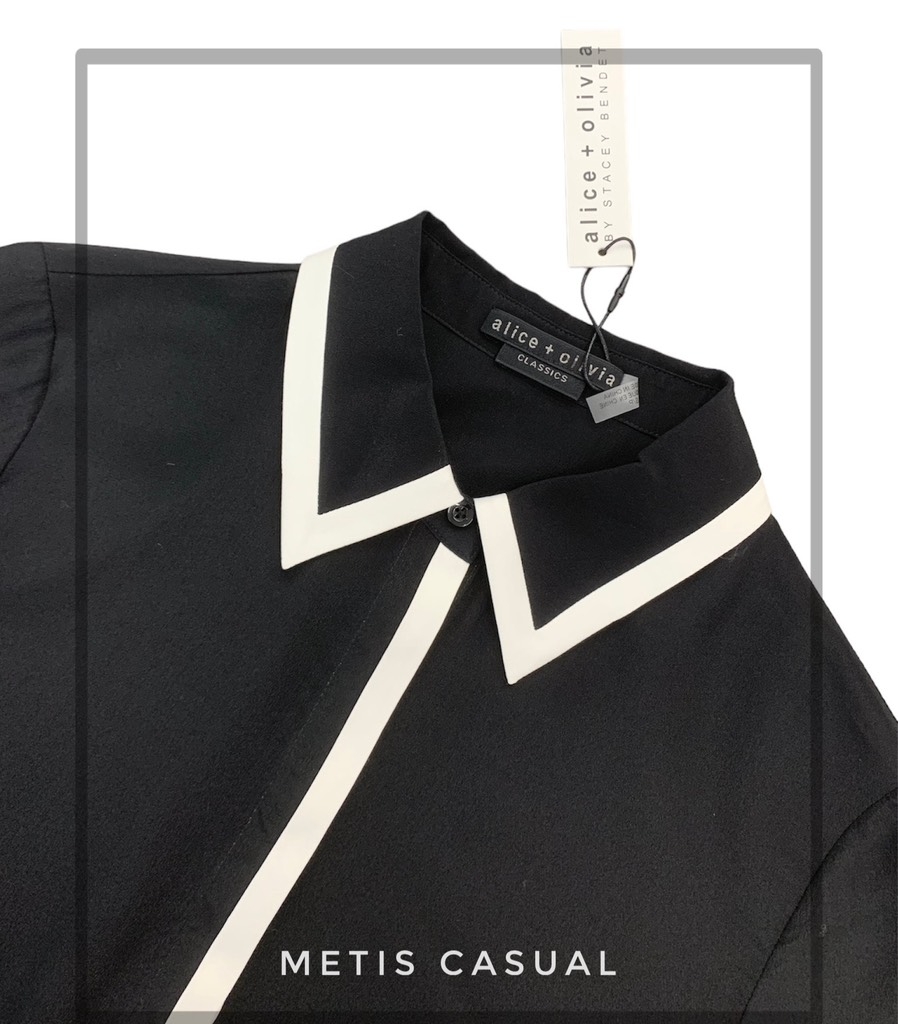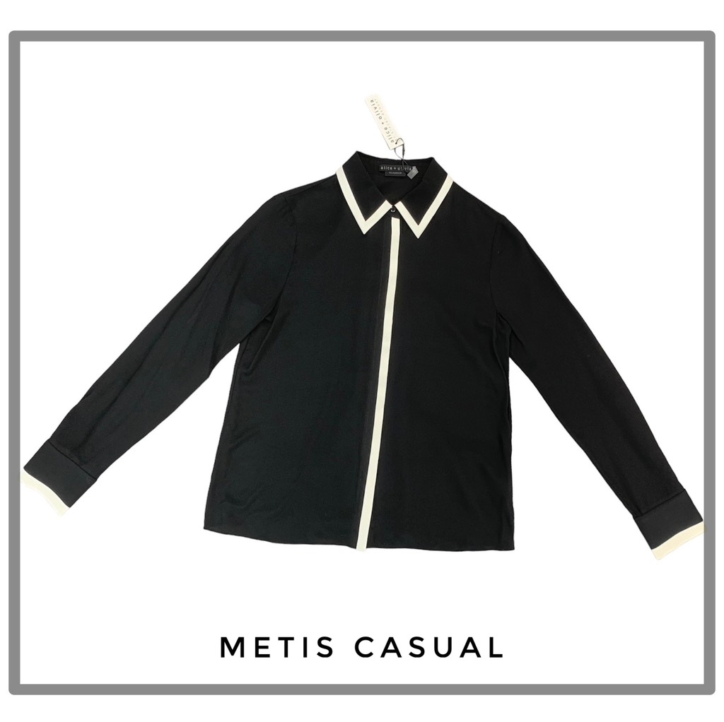 Sơ mi Alice+ Olivia đen viền trắng