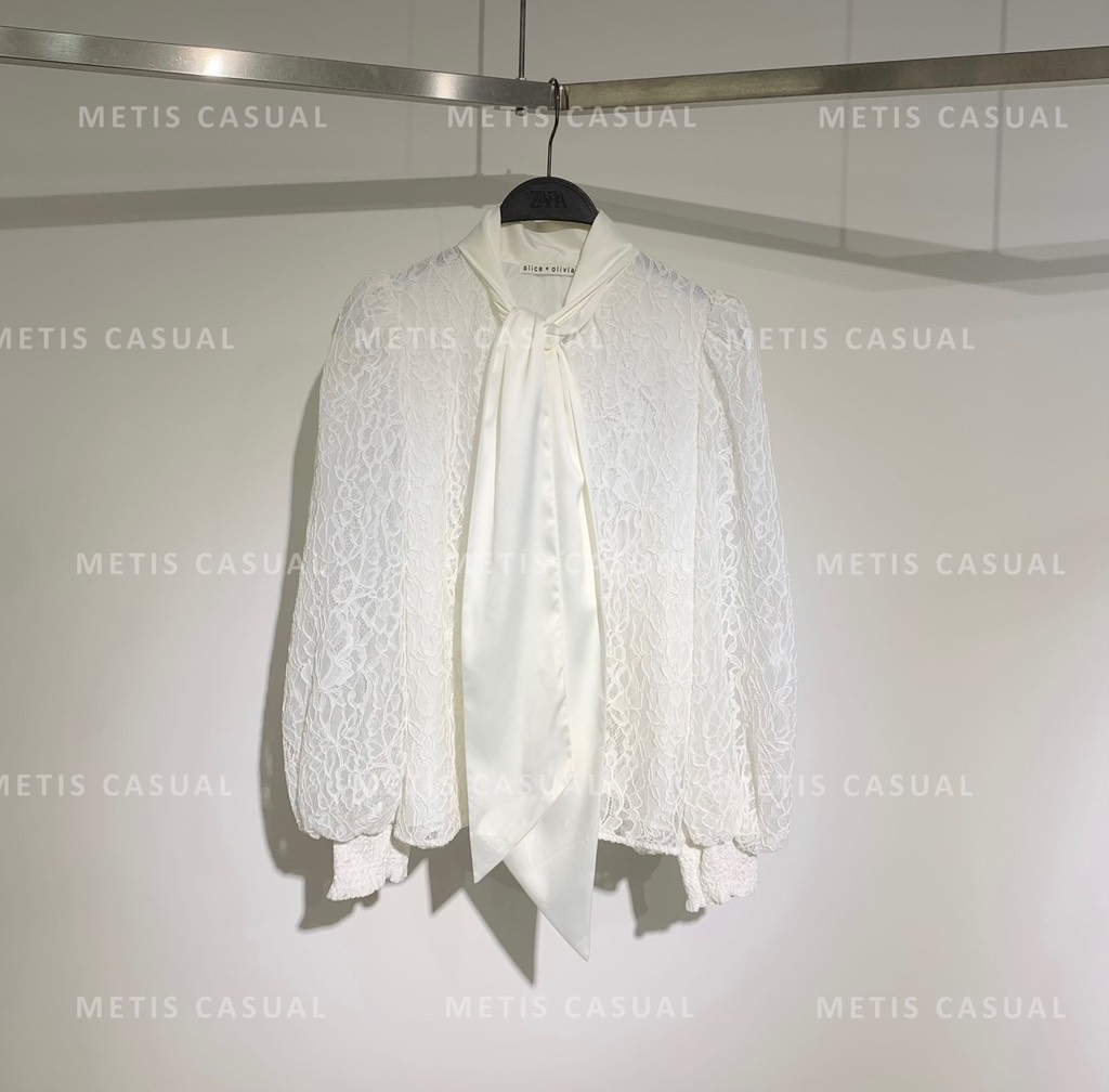 Sơ mi Alice+ Olivia kem ren dập cổ nơ