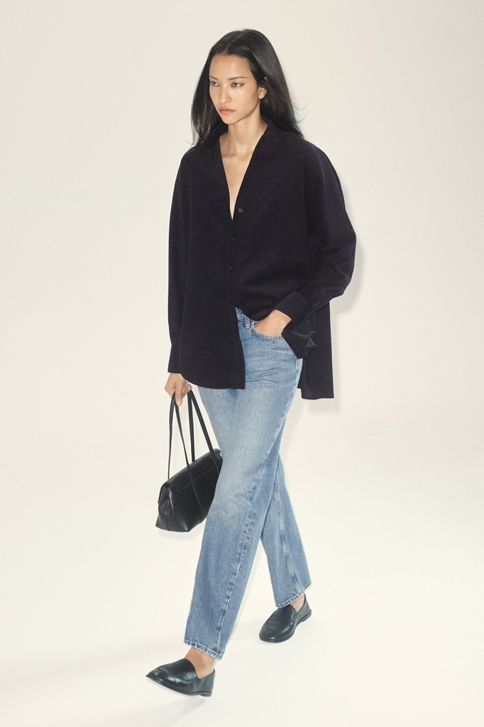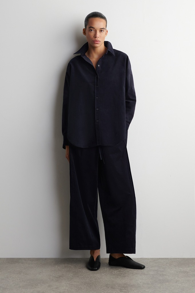 Sơ mi COS navy nhung tăm