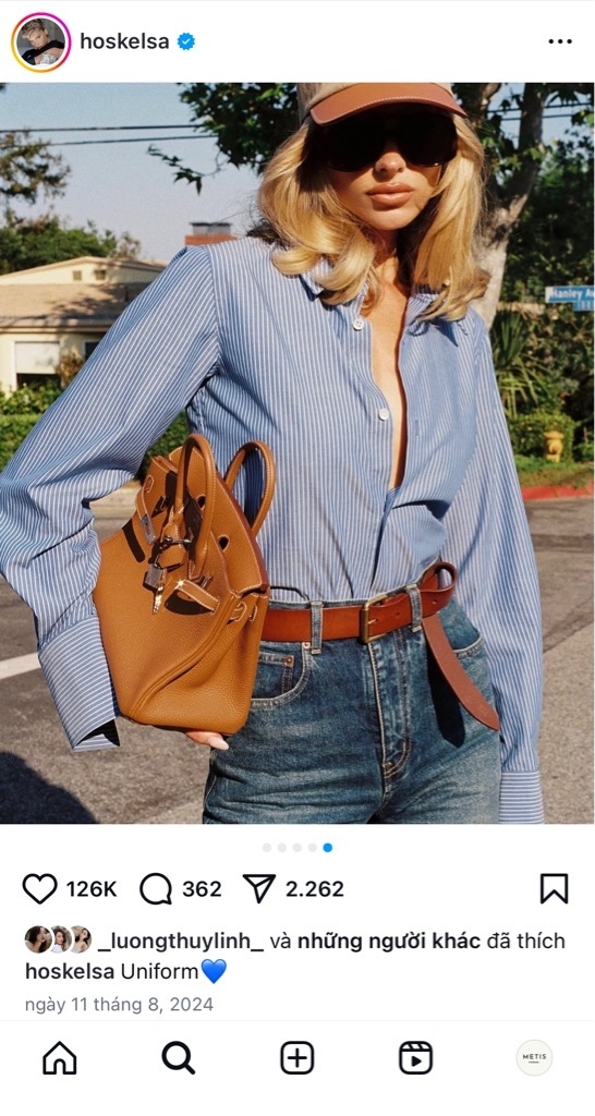 Sơ mi MAJE lụa nâu đính đá (có set)