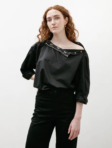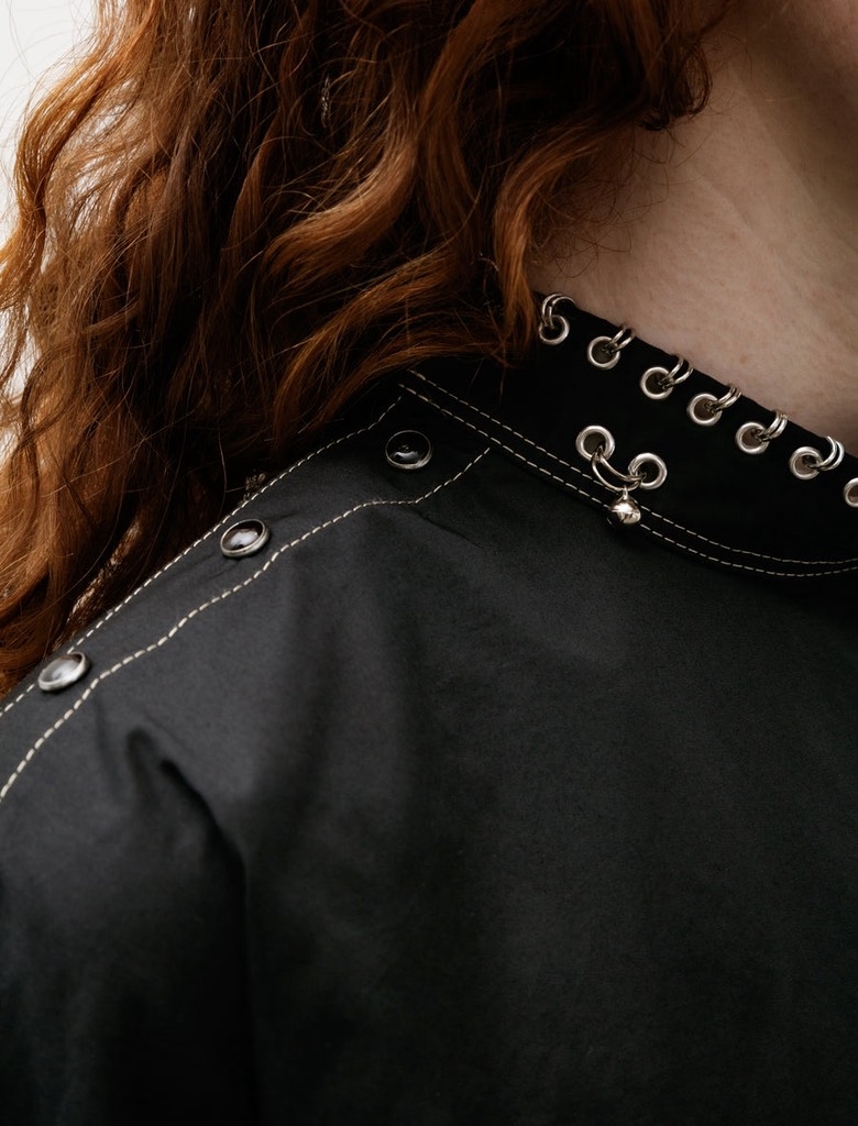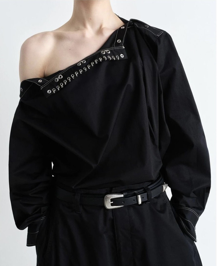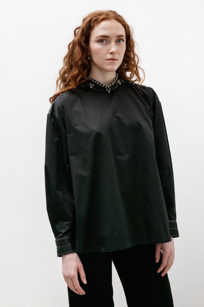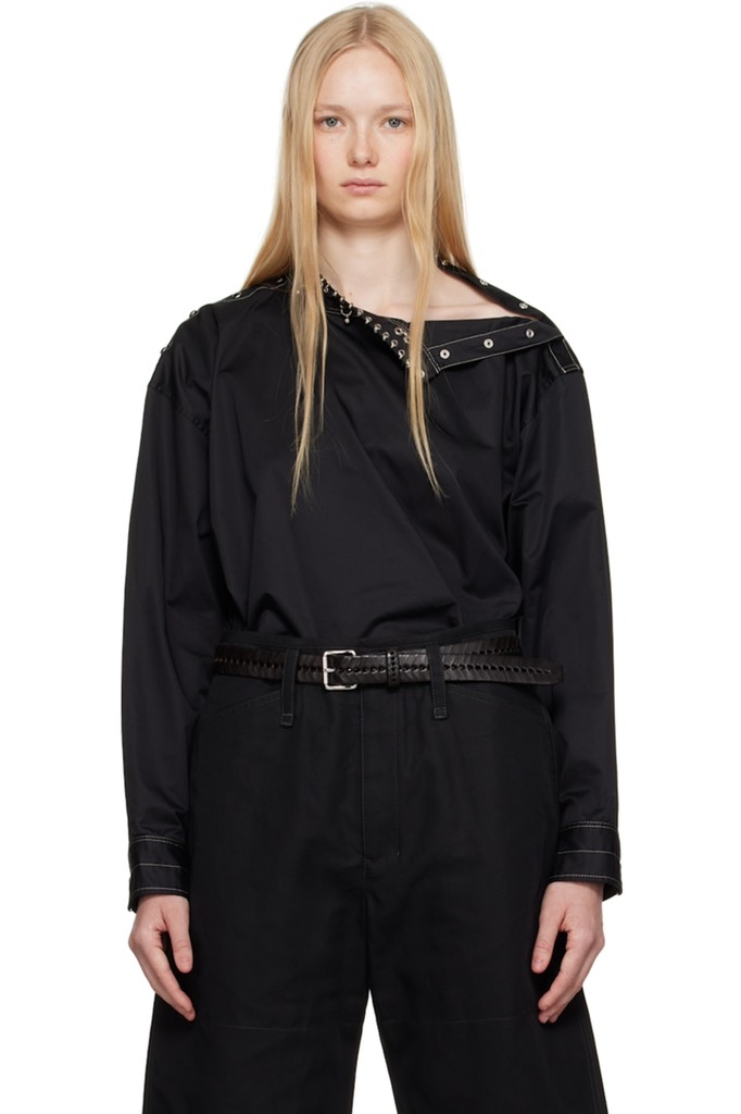 Sơ mi LEMAIRE cổ xích đen chỉ nổi