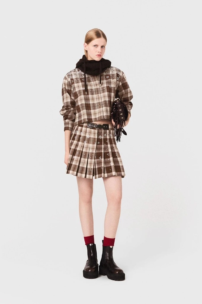 Chân váy MAJE kẻ nâu đính đá ( có set )