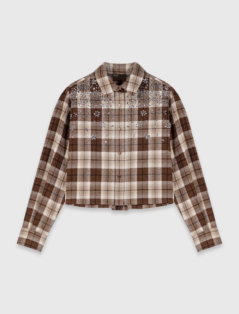 Sơ mi MAJE kẻ nâu đính đá (có set)