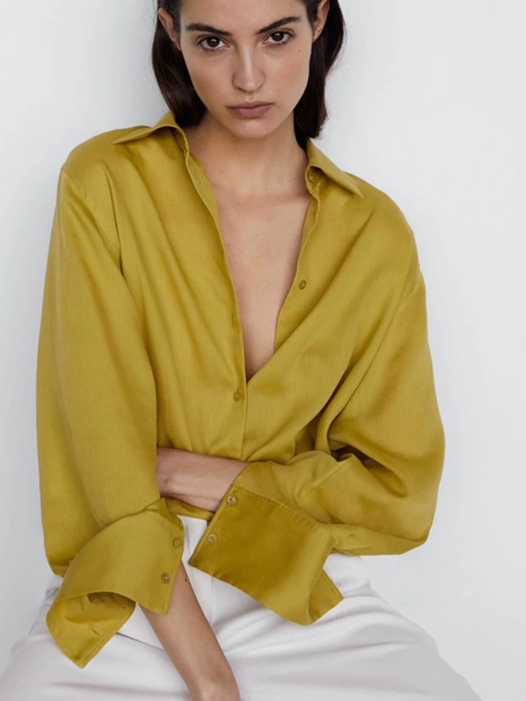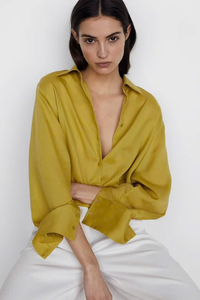Sơ mi MASSIMO DUTTI lụa nâu đuôi tôm