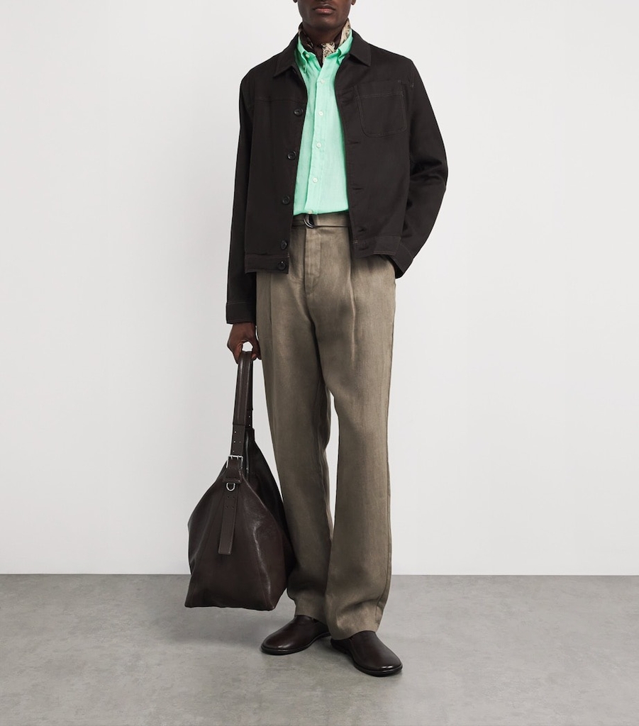 Sơ mi ZEGNA linen cổ V túi ngực
