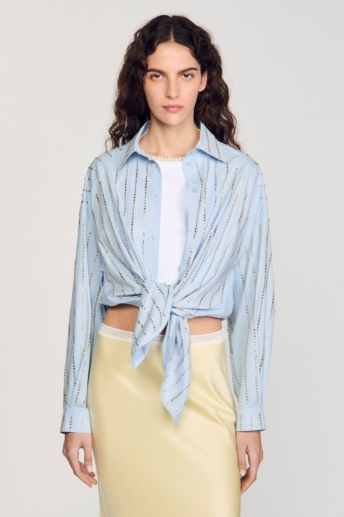 Sơ mi SEZANE bèo cổ thêu hoa nổi