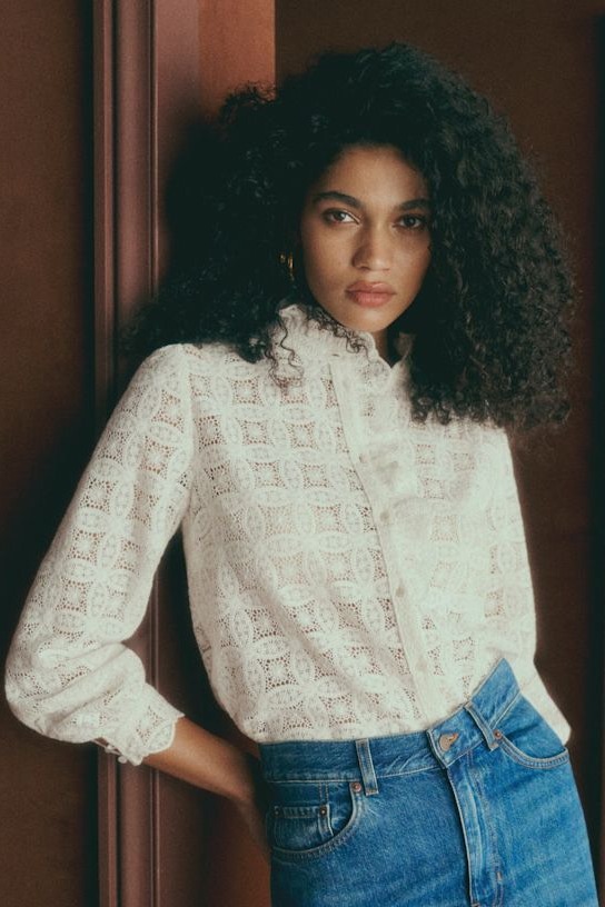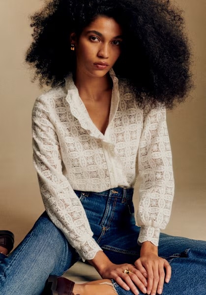 Sơ mi SEZANE ren bèo ngực 2 màu