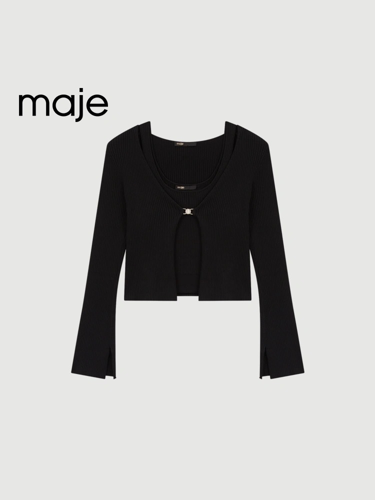 Áo SANDRO cộc tay cổ sen trắng cườm