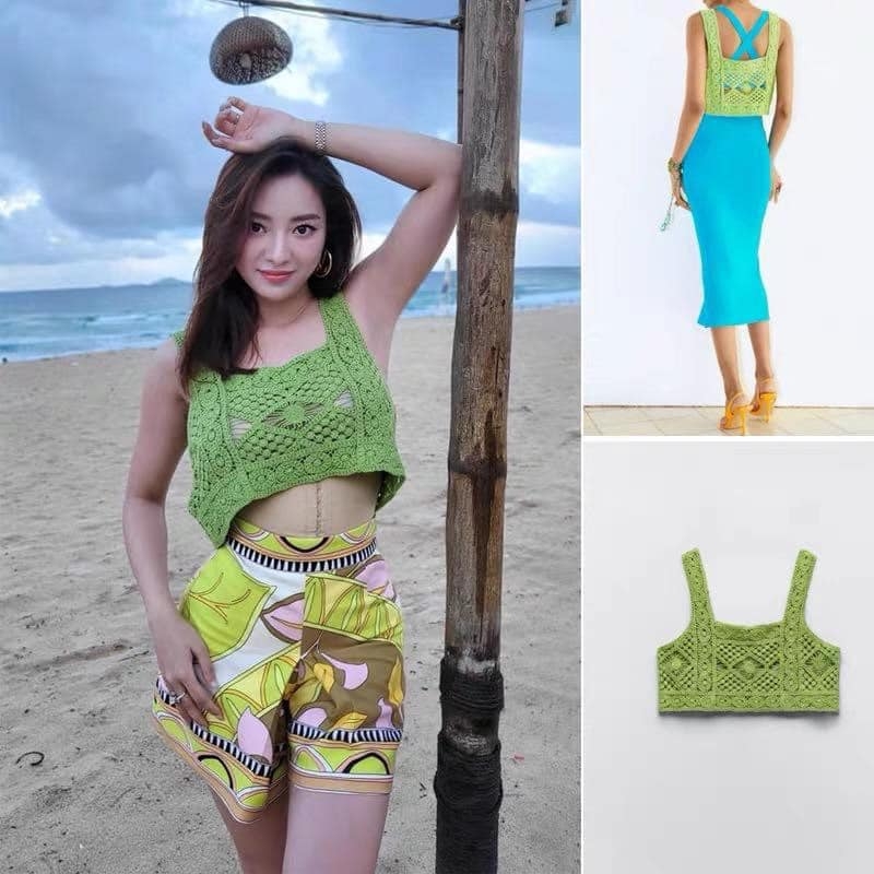 Top Zara len móc xanh cốm