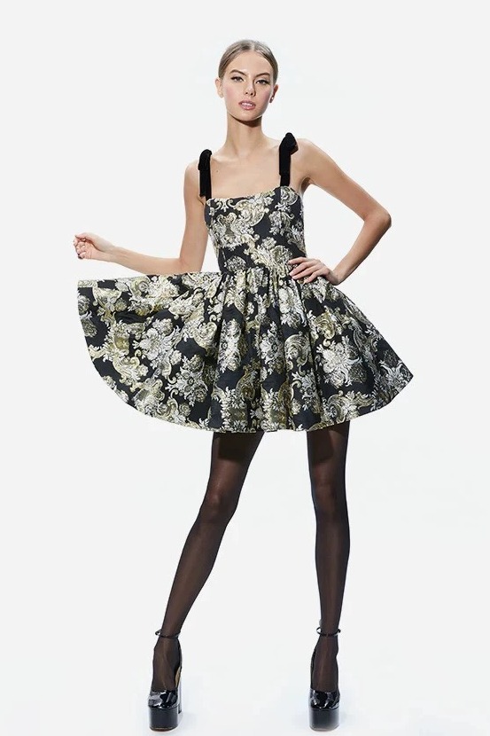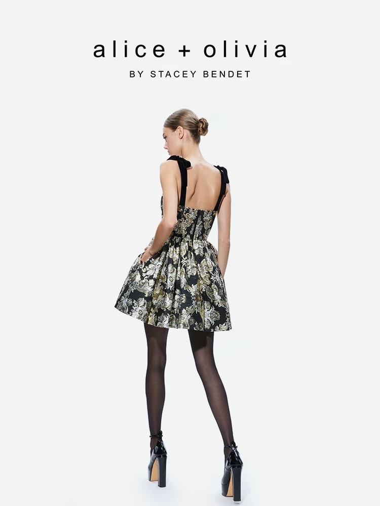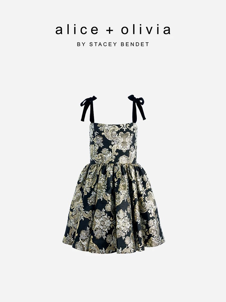 Váy Alice+ Olivia 2 dây họa tiết hoa bling
