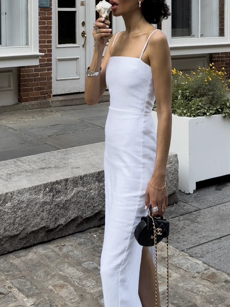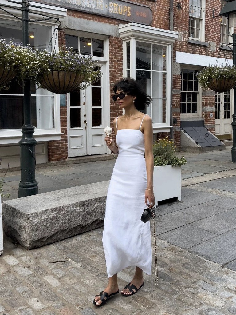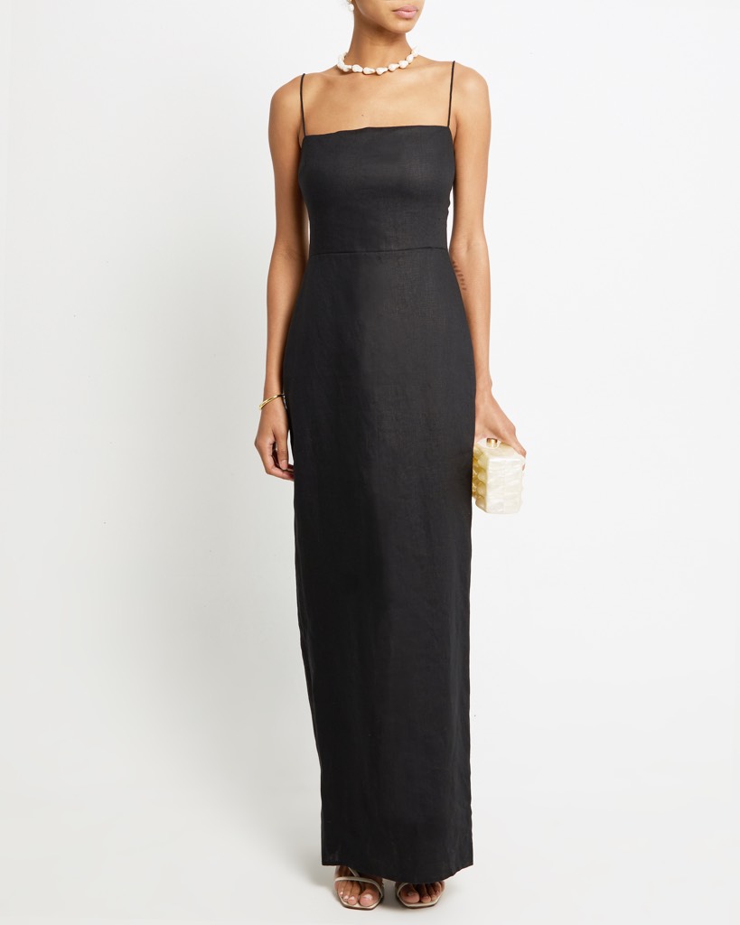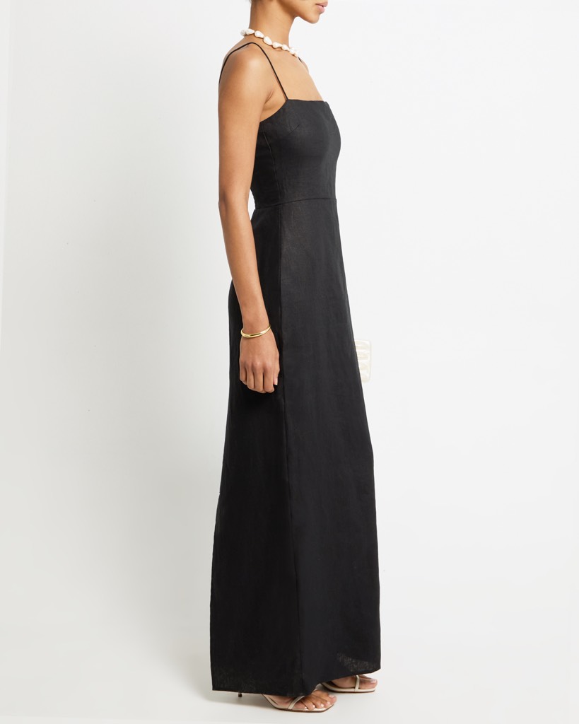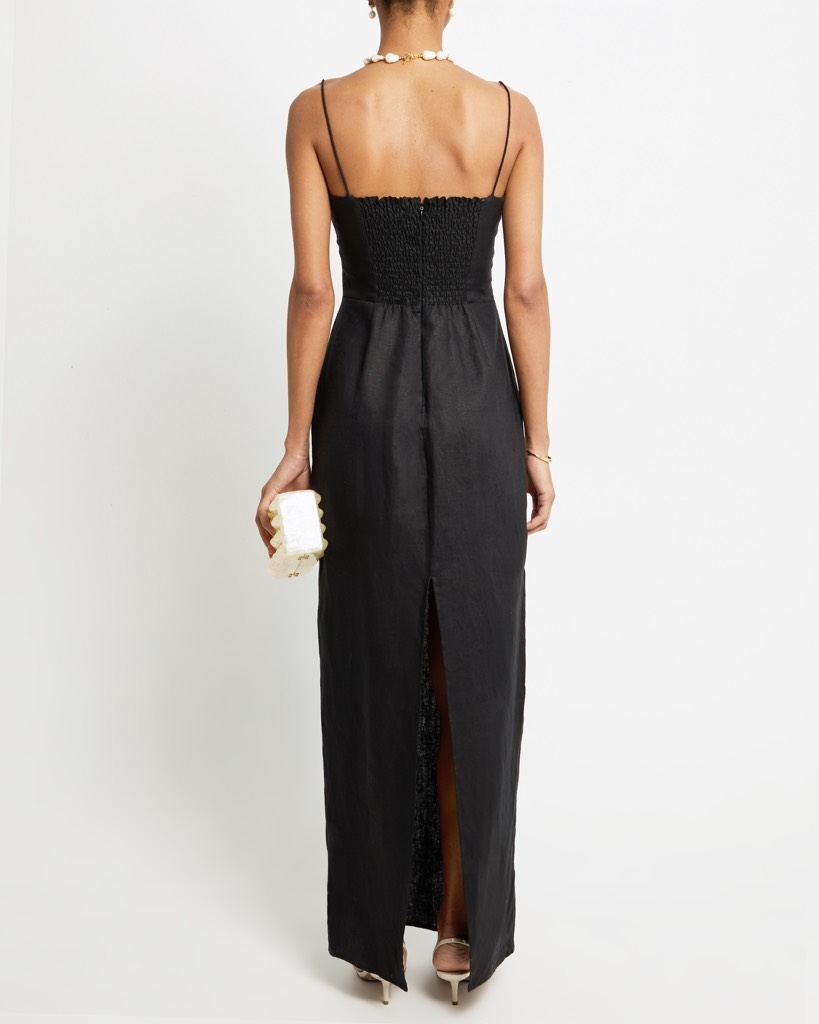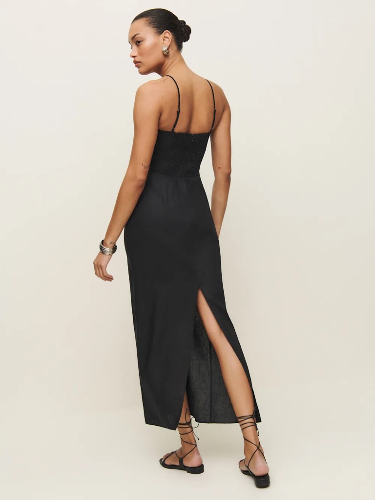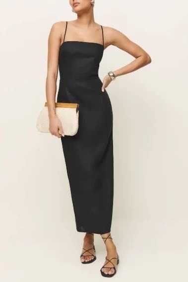 Váy 2 dây SANDRO đen chân xòe cổ đá