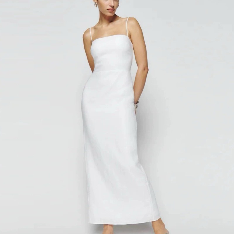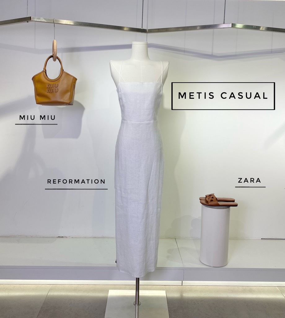 Váy SELF PORTRAIT kem kẻ cộc tay
