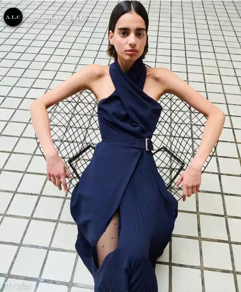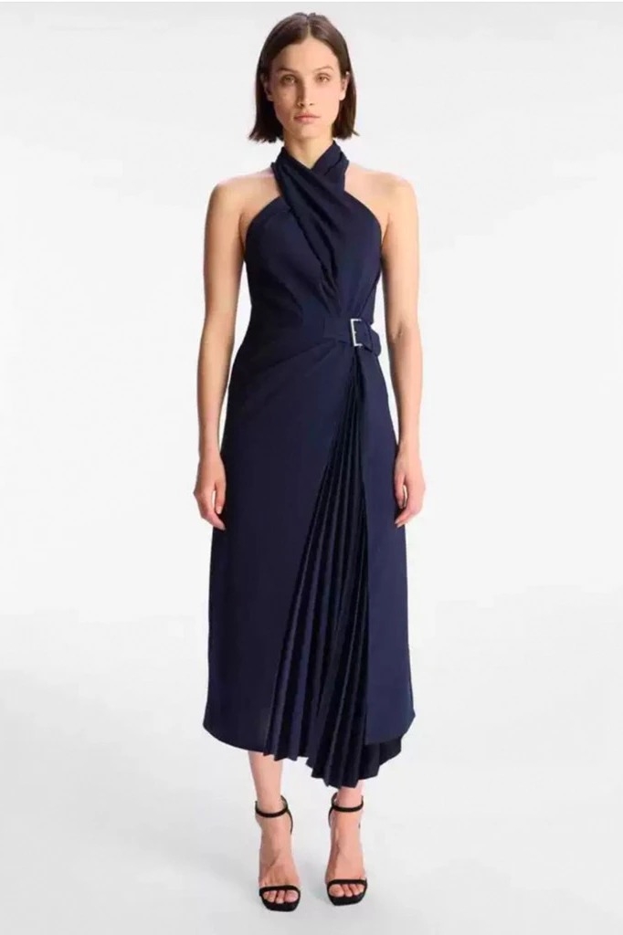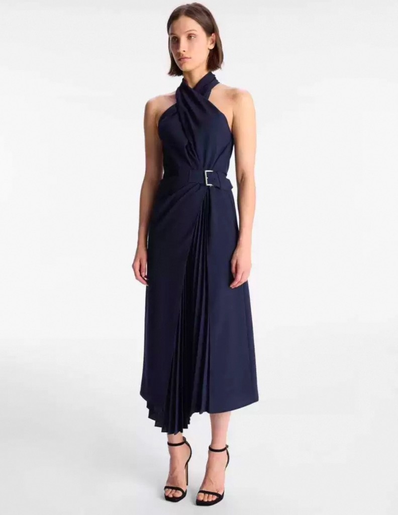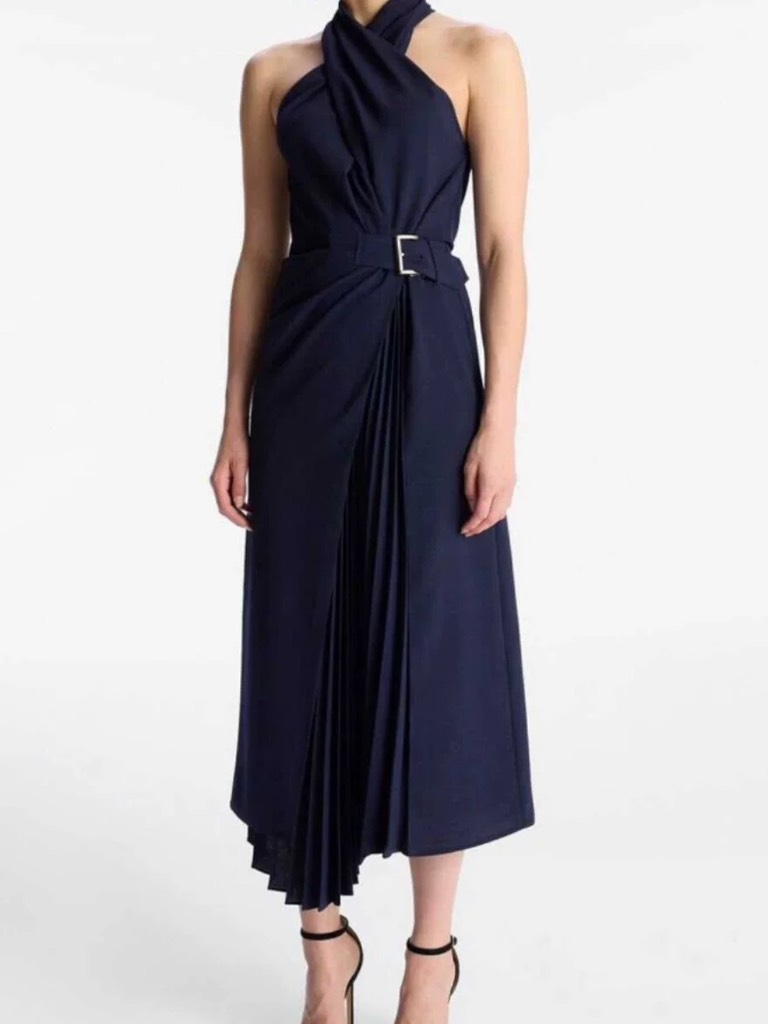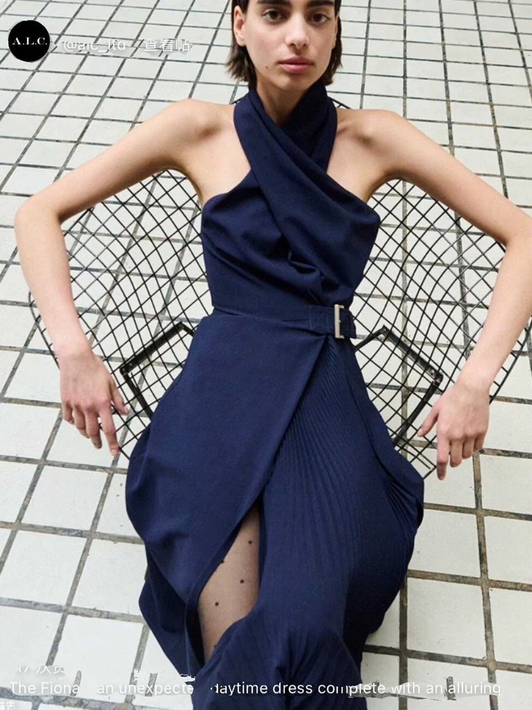 Váy A.L.C cổ yếm navy dài belt lệch