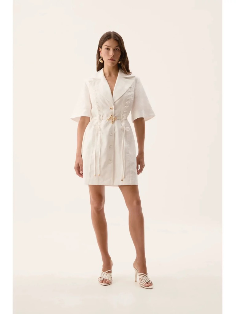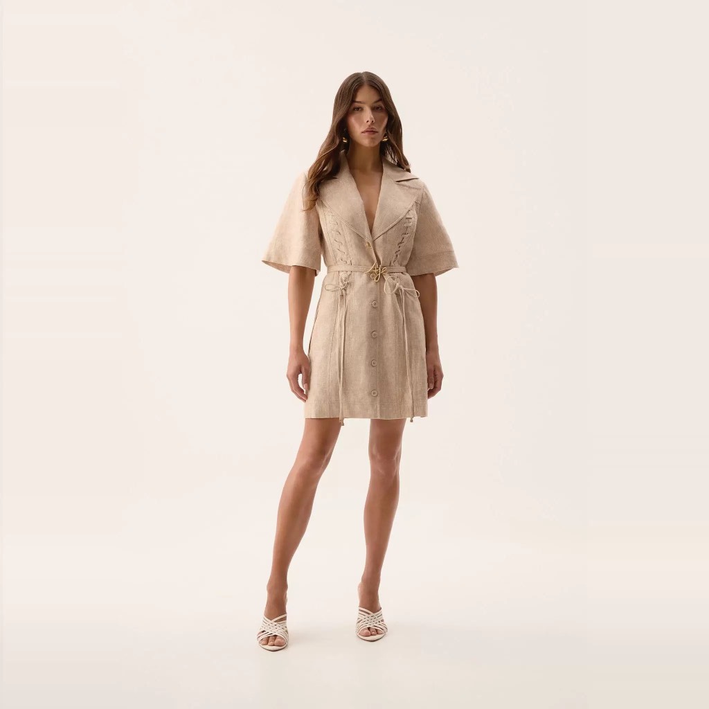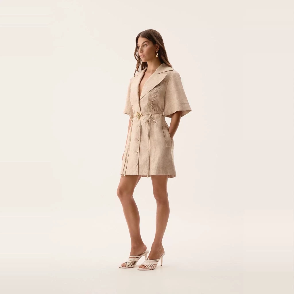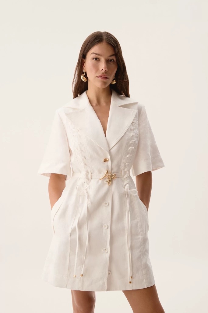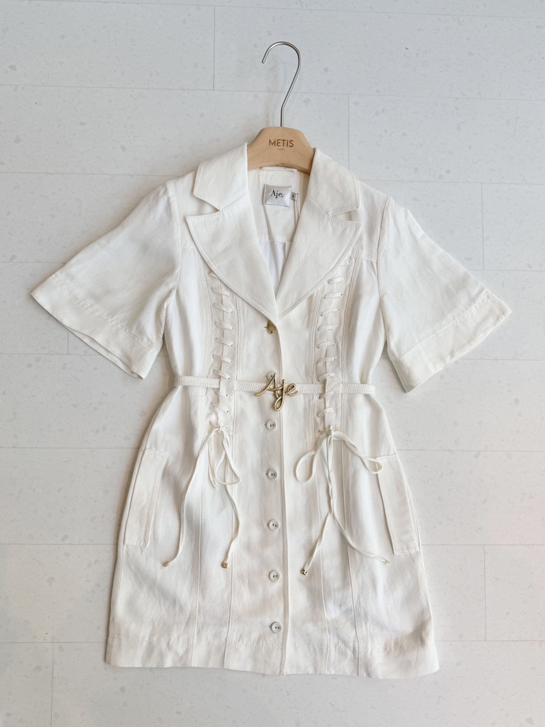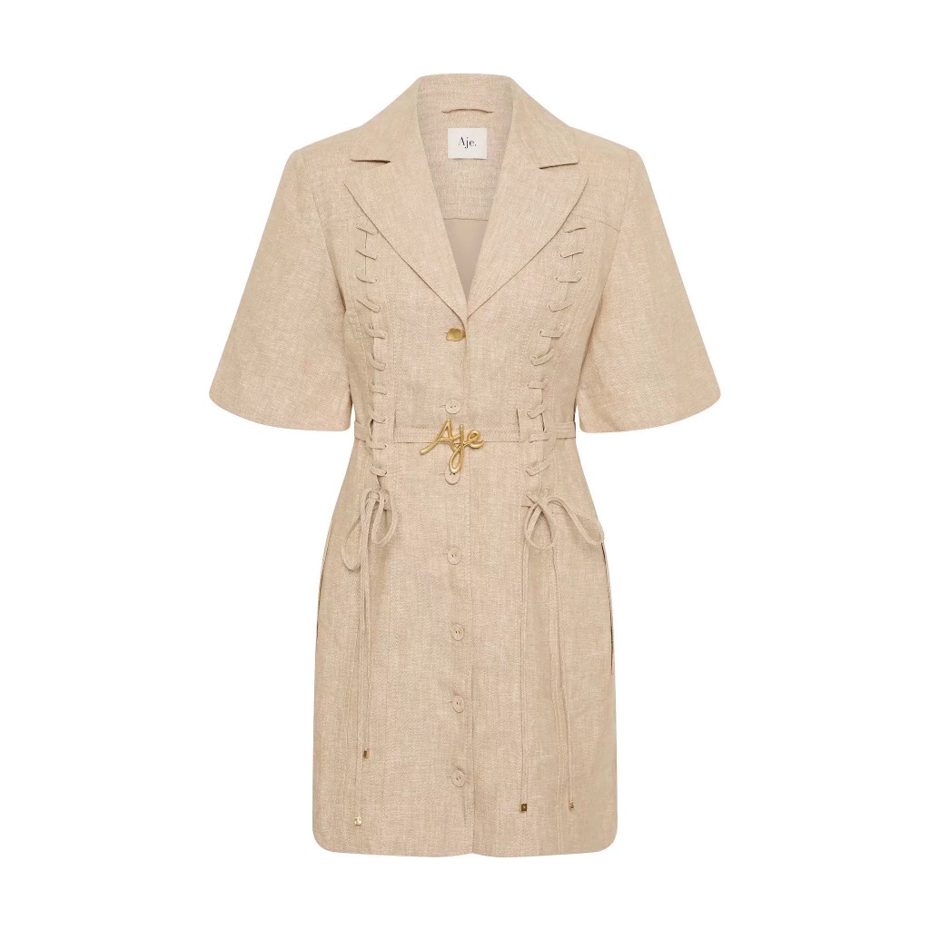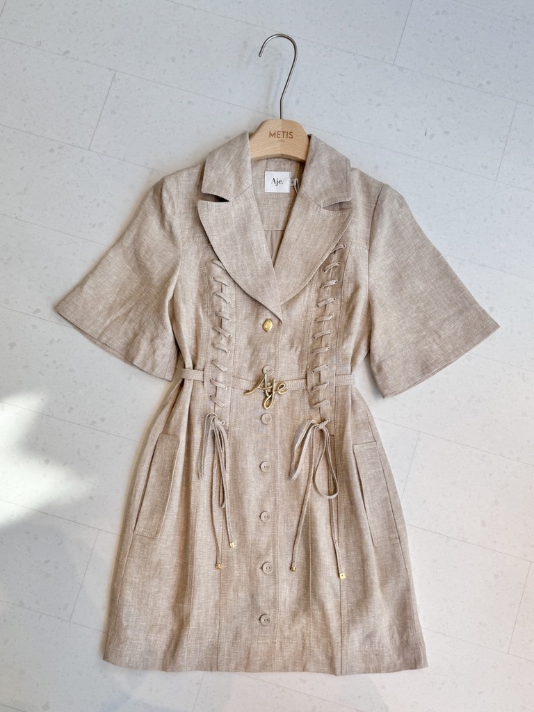 Váy AJE cổ bẻ tay lỡ dây đan trước