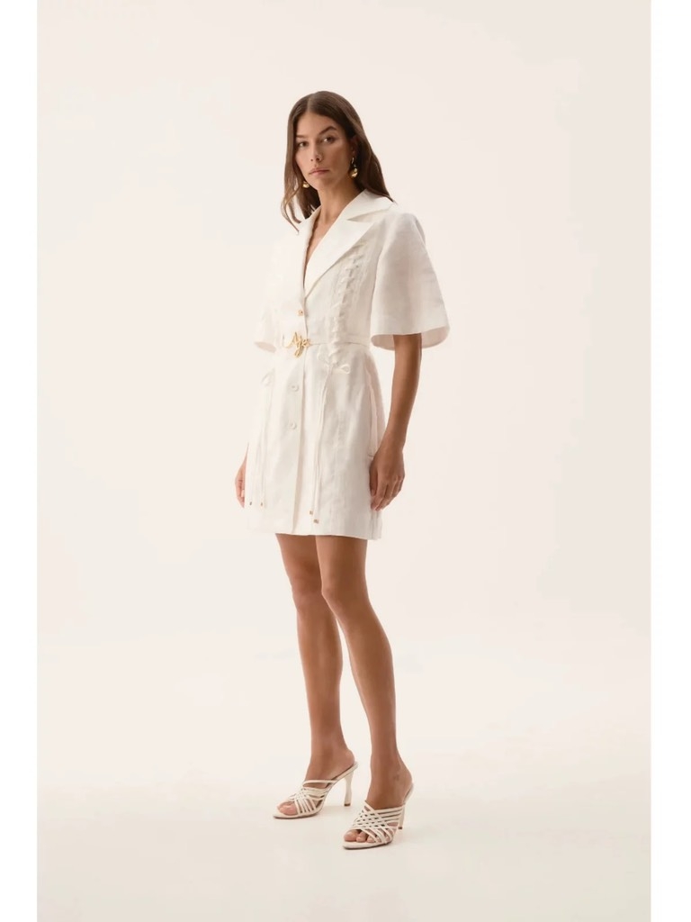 Váy SELF PORTRAIT kem kẻ cộc tay