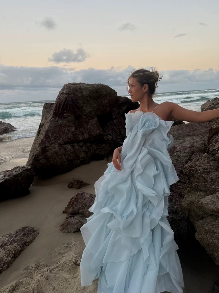Váy AJE xanh 2 dây xếp tầng