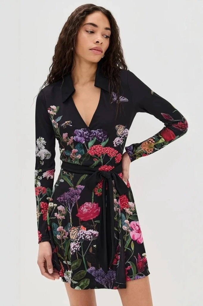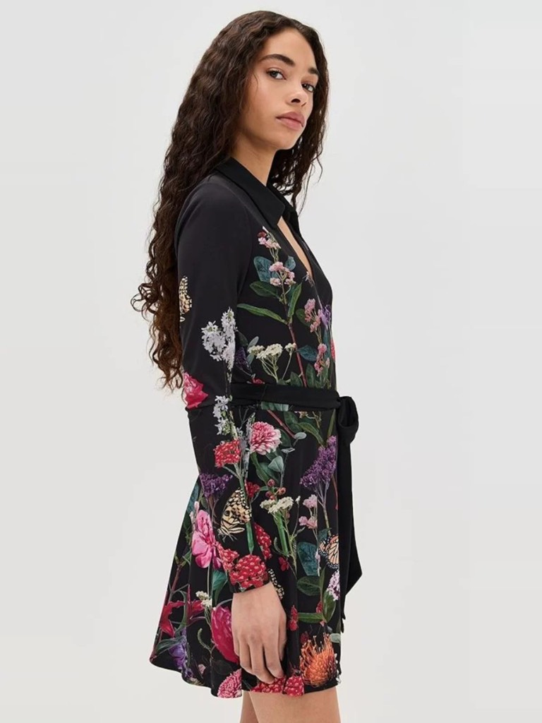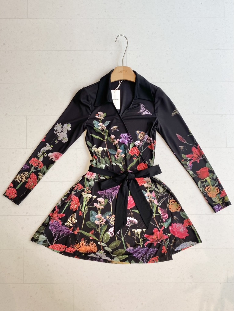 Váy ALICE OLIVIA đen hoa vạt chéo