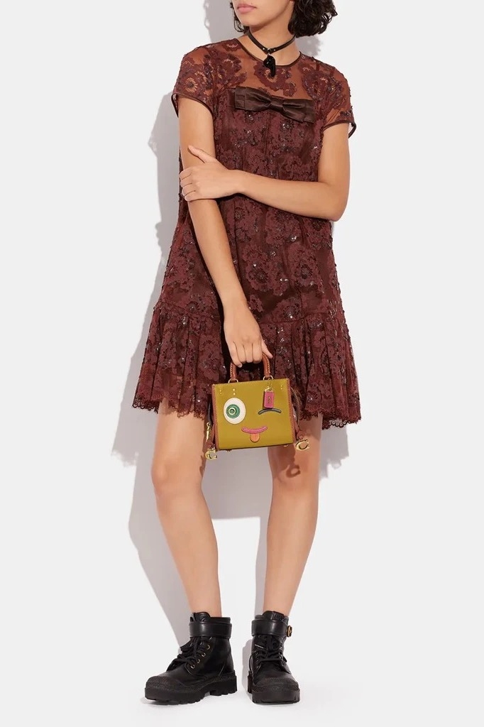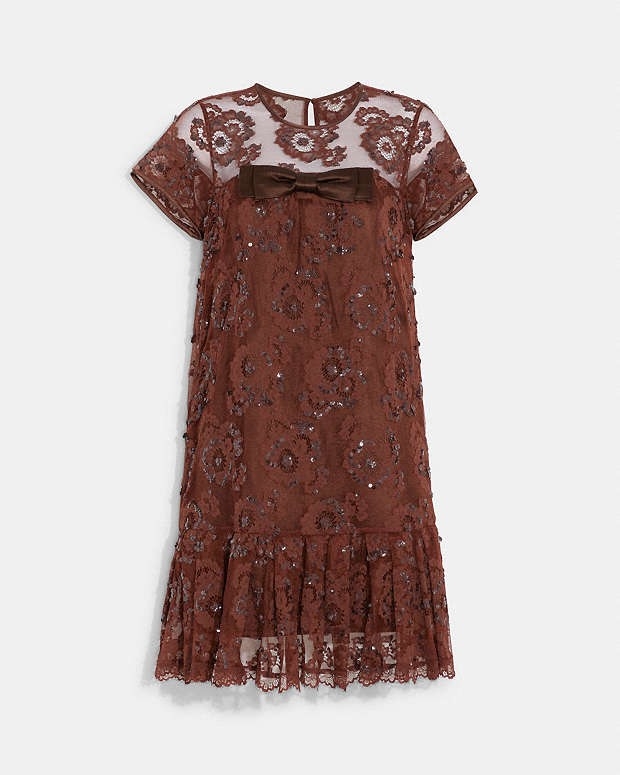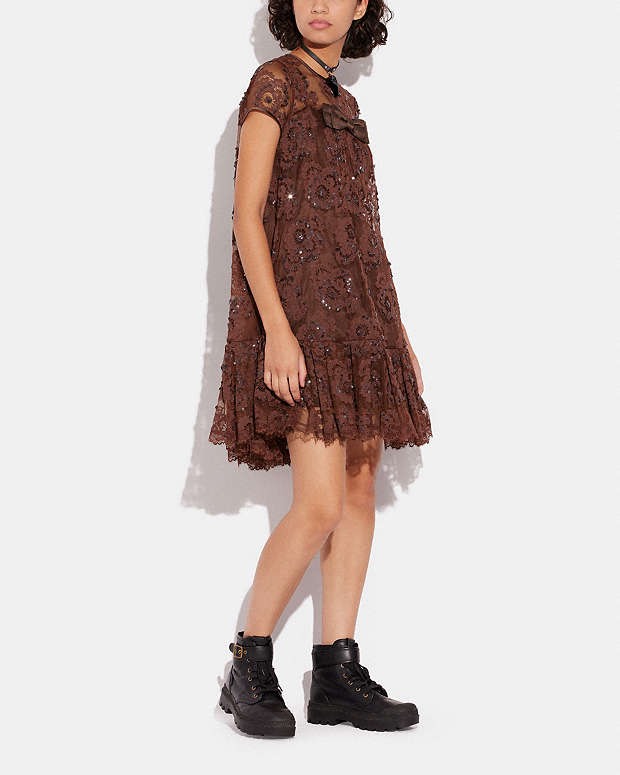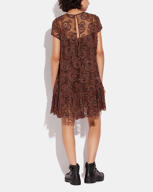 Váy COACH ren nâu hoa nổi