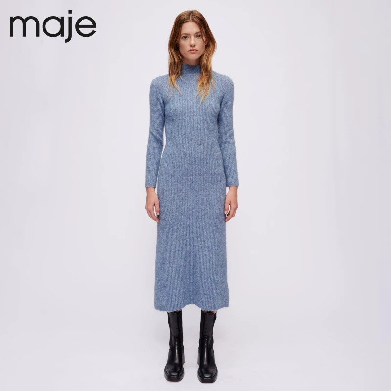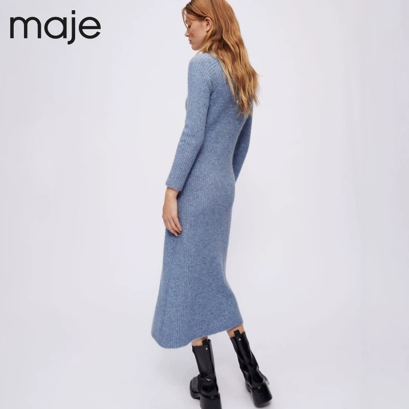 Váy len Maje xanh trơn