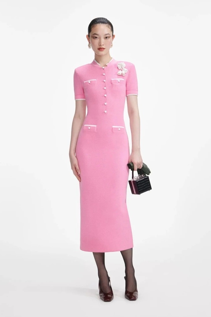 Váy SELF PORTRAIT tweed hồng chân trắng