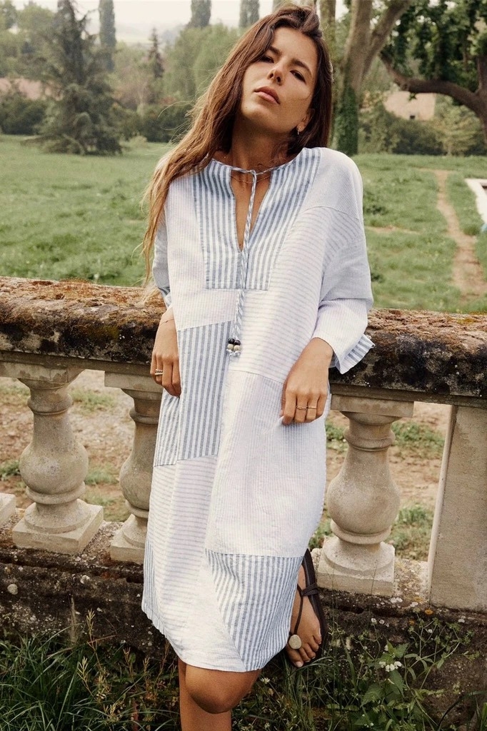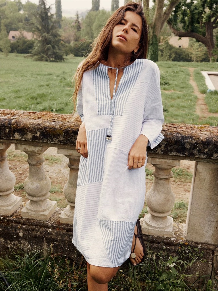 Váy SELF PORTRAIT kem cổ đá dài tay