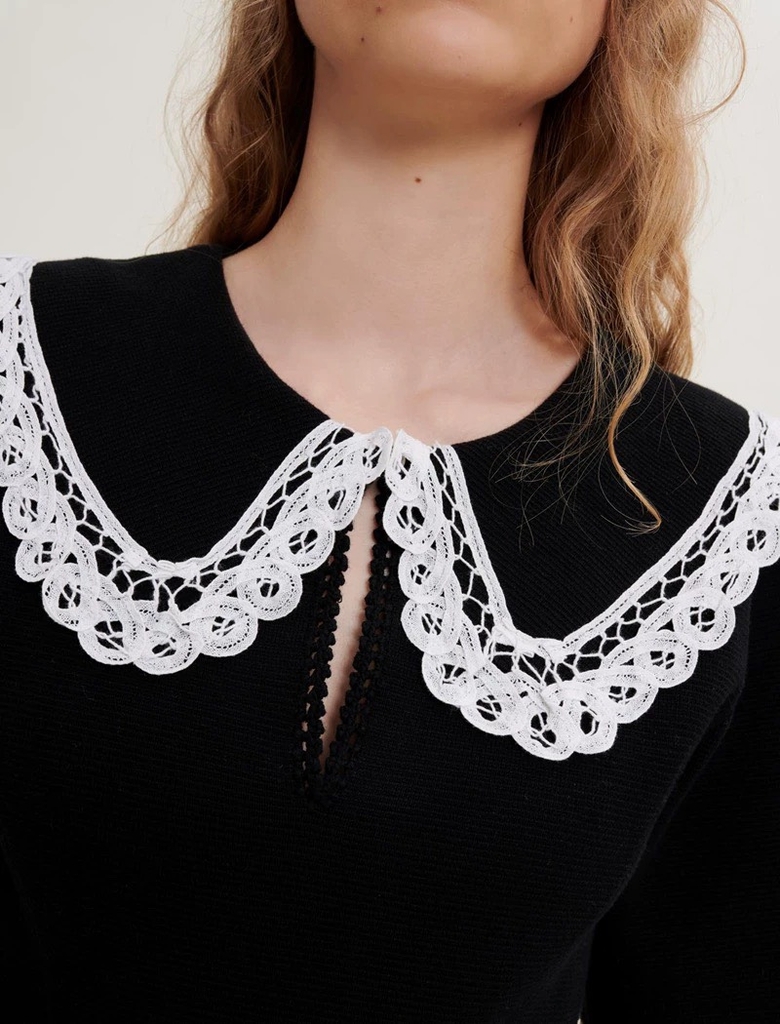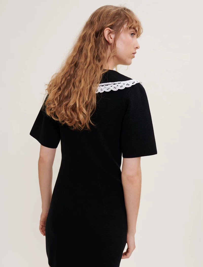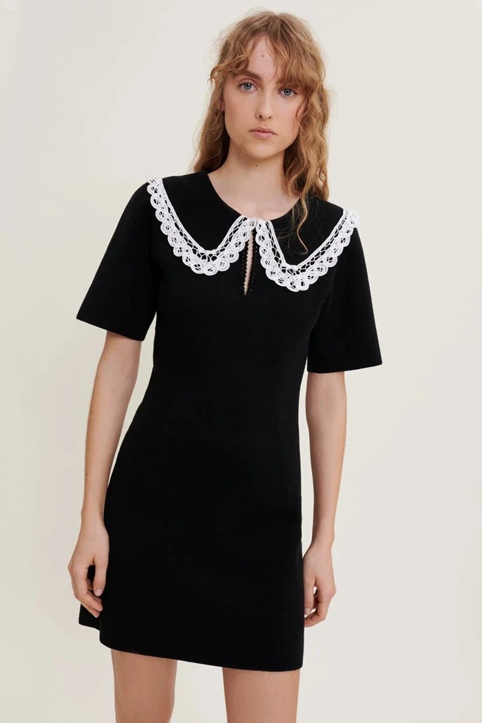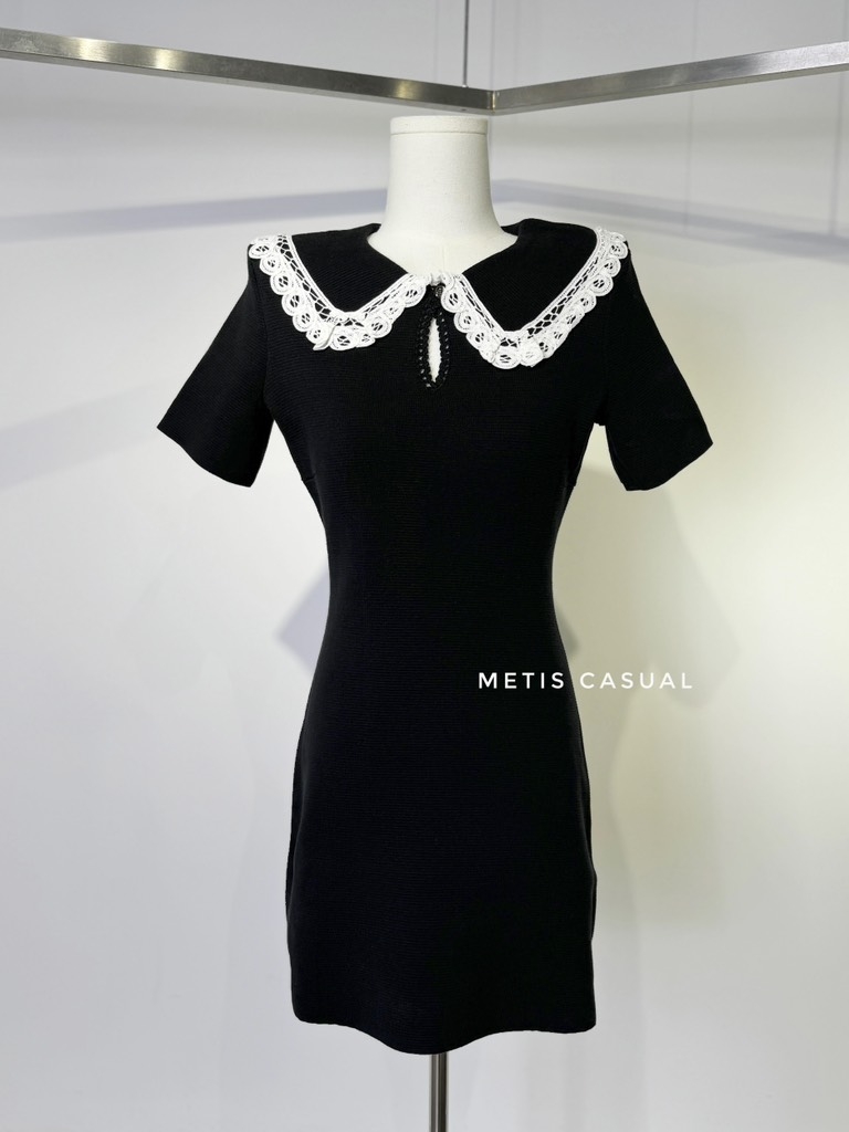 Váy SELF PORTRAIT cộc tay ren xanh hoa nổi