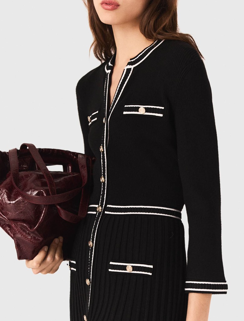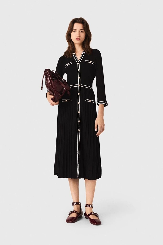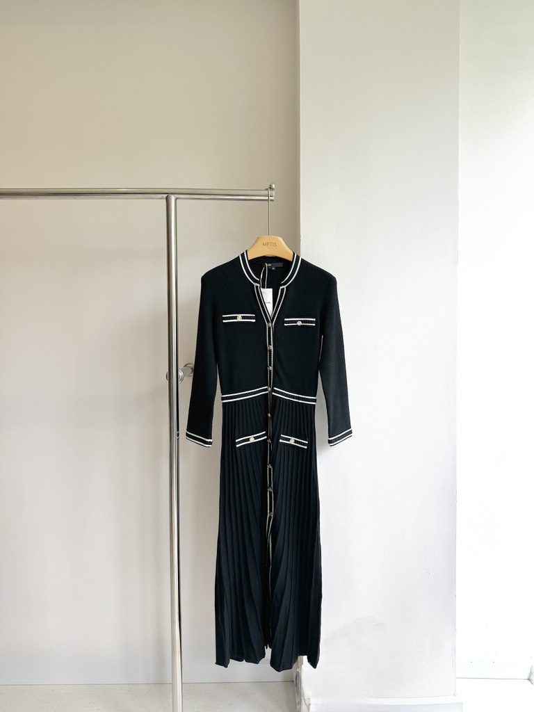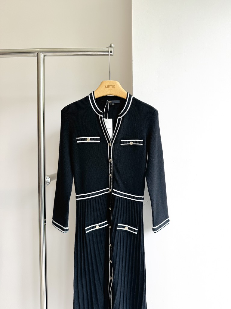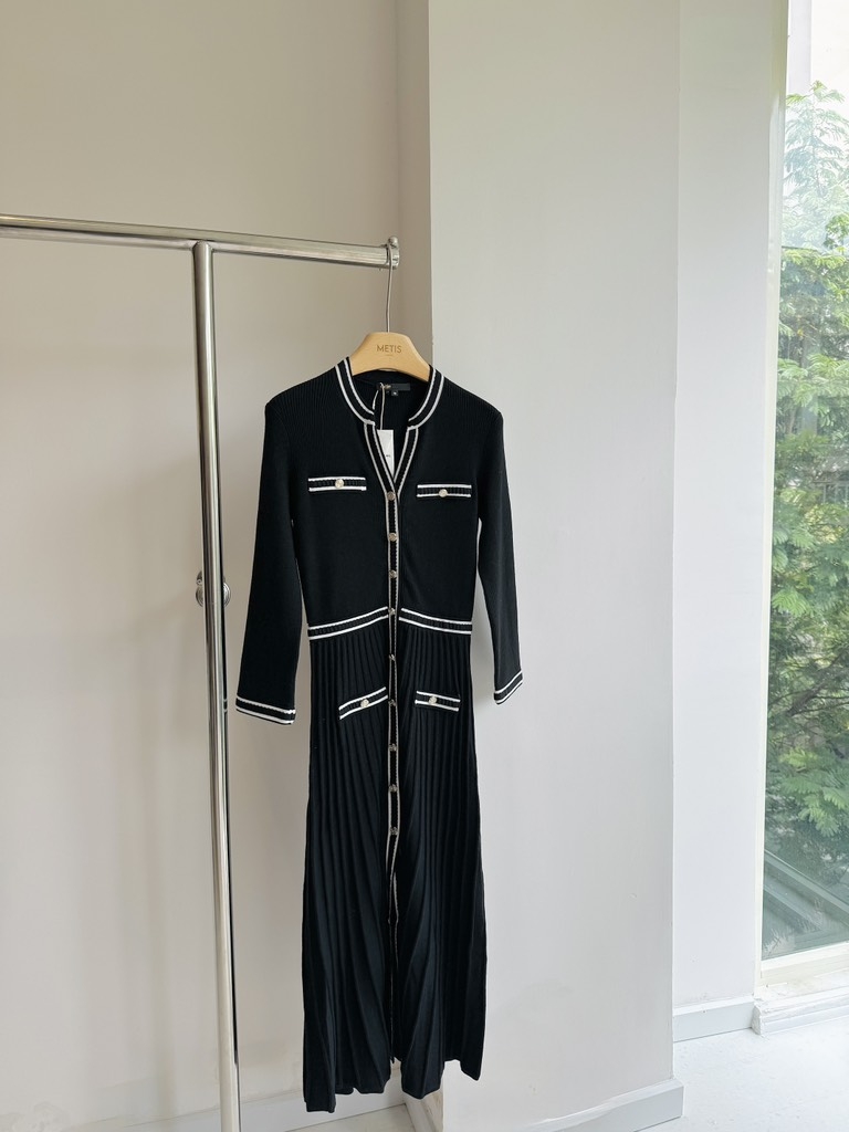Váy MAJE đen viền trắng dáng dài