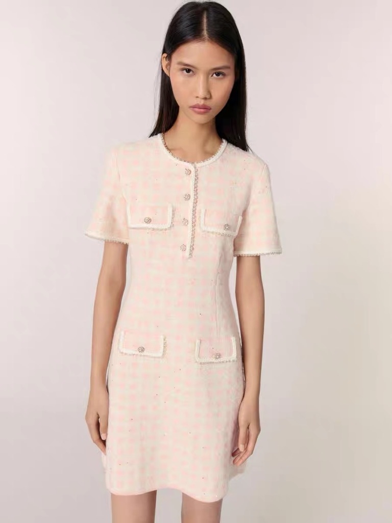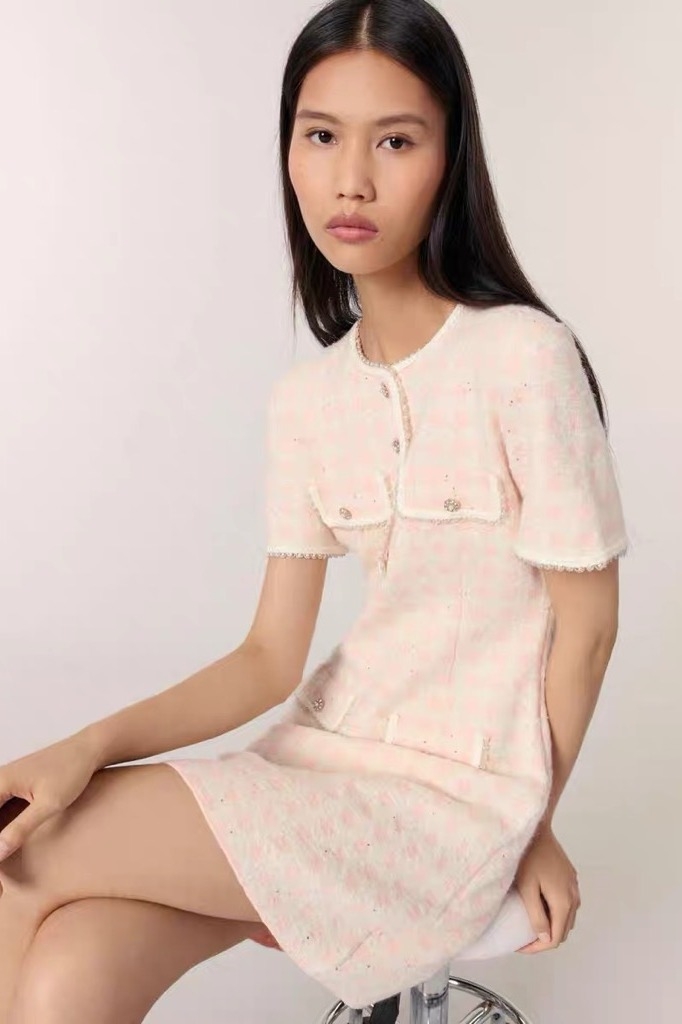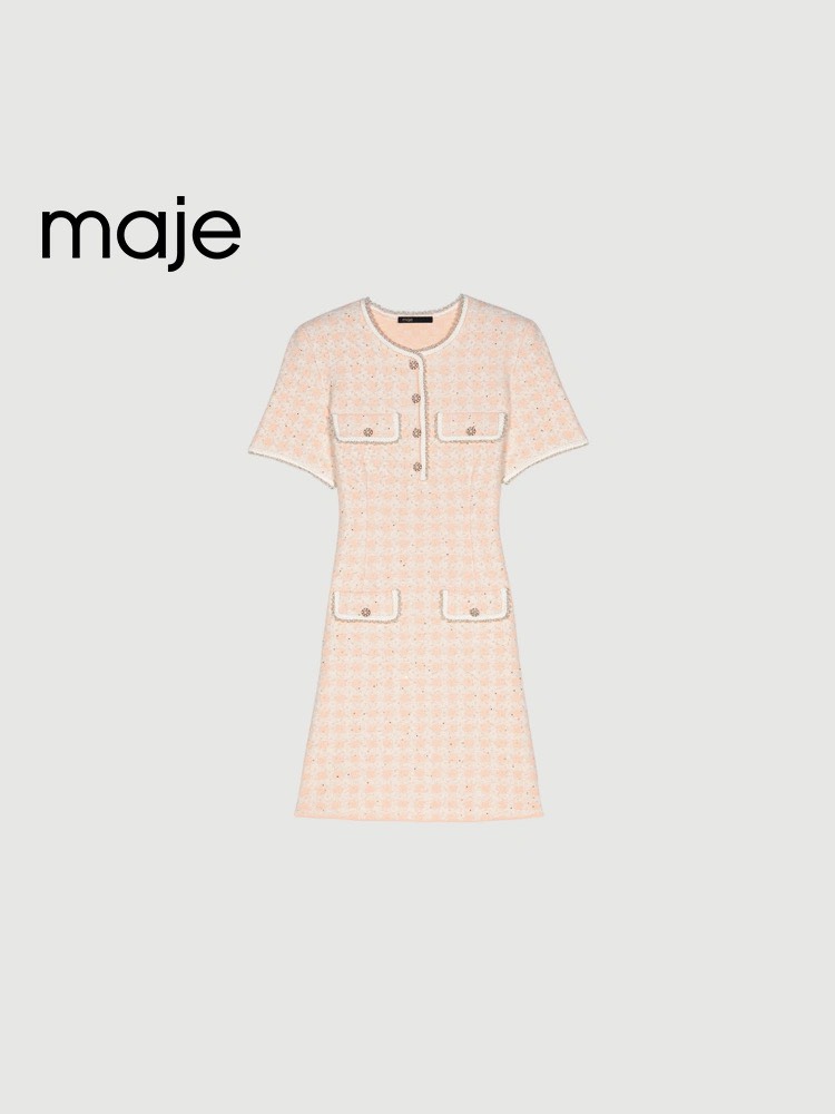 Váy MAJE hồng trắng cộc tay
